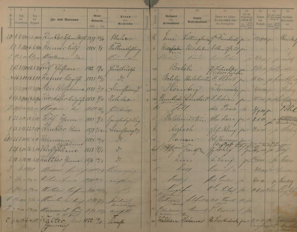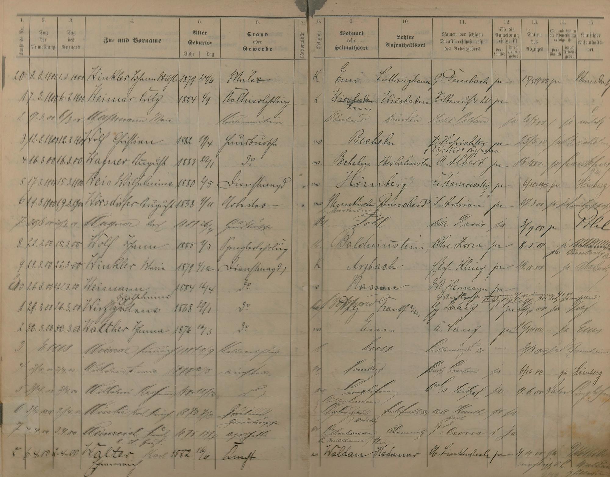 Melderegister der Gewerbegehilfen, Gesellen und Dienstboten 1900 - 1901