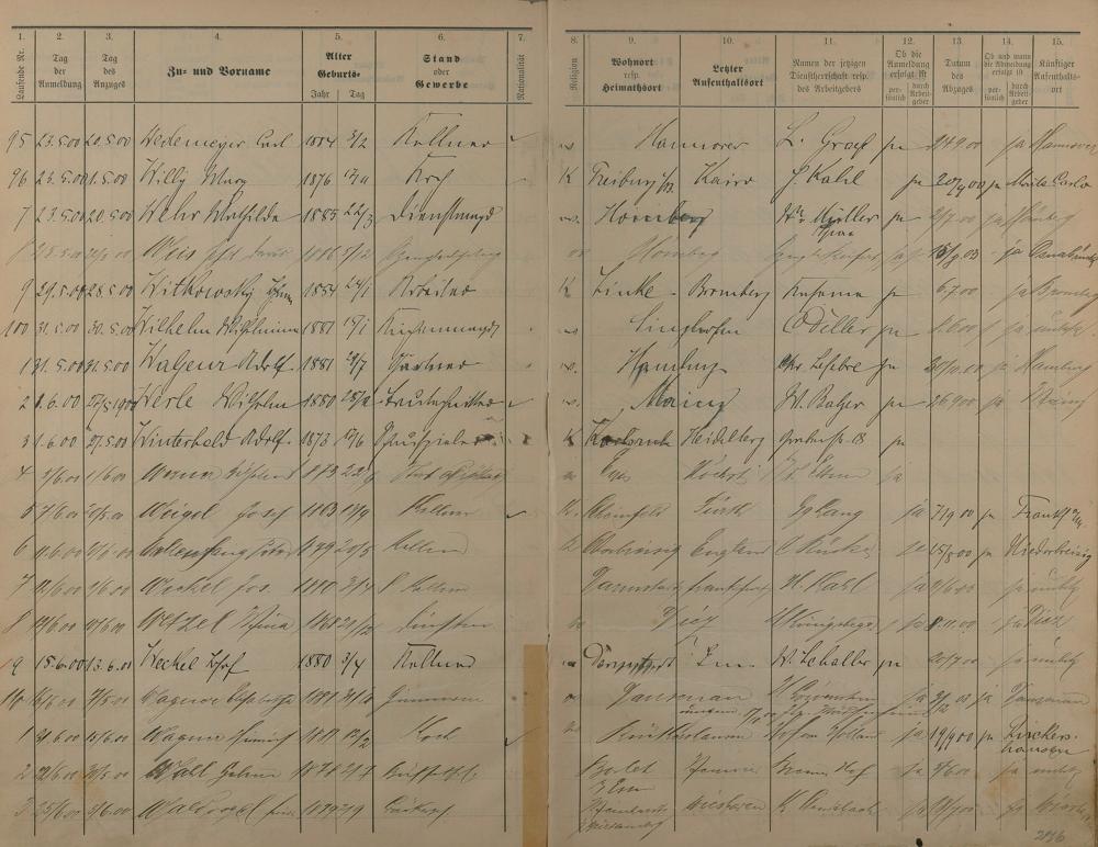 Melderegister der Gewerbegehilfen, Gesellen und Dienstboten 1900 - 1901