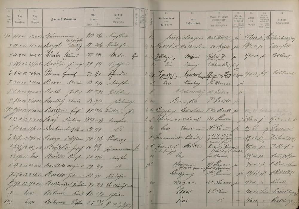 Melderegister der Gewerbegehilfen, Gesellen und Dienstboten 1902 - 1903