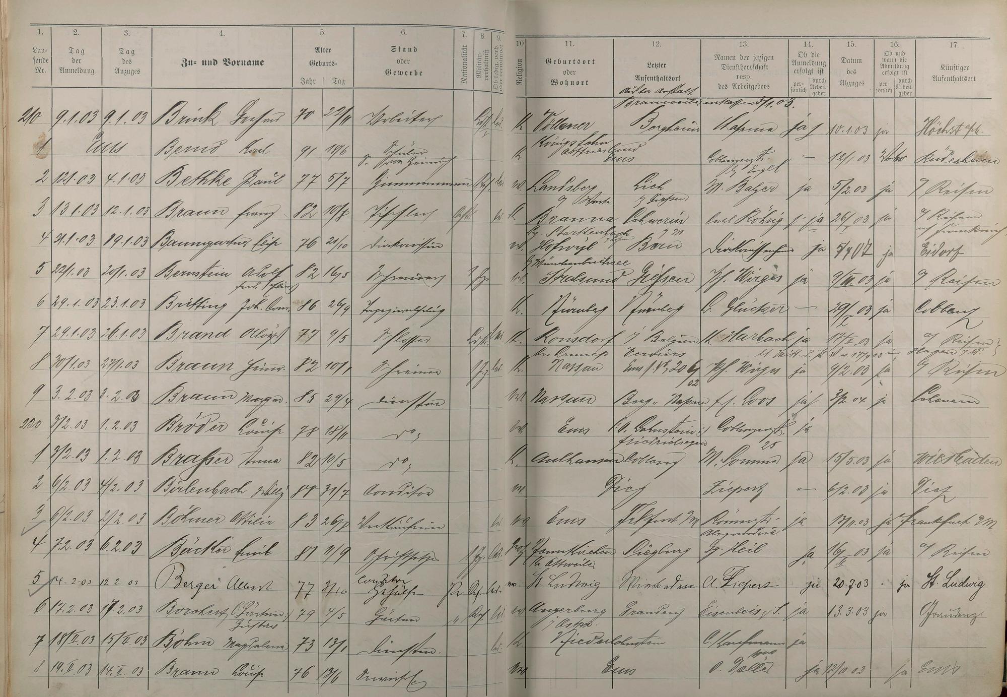 Melderegister der Gewerbegehilfen, Gesellen und Dienstboten 1902 - 1903