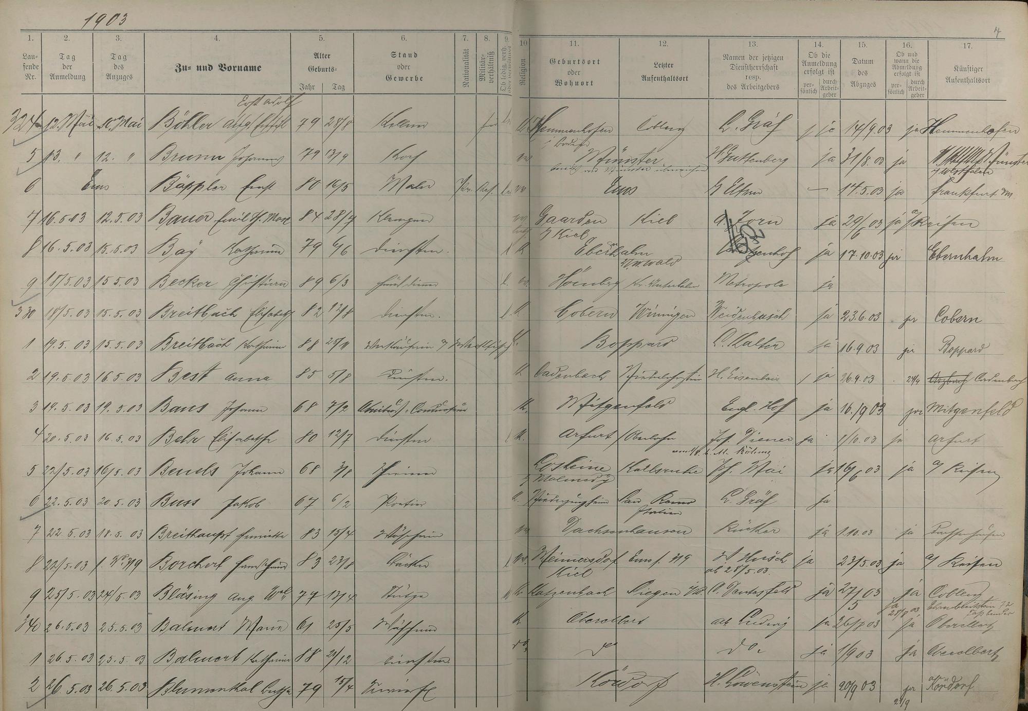 Melderegister der Gewerbegehilfen, Gesellen und Dienstboten 1902 - 1903