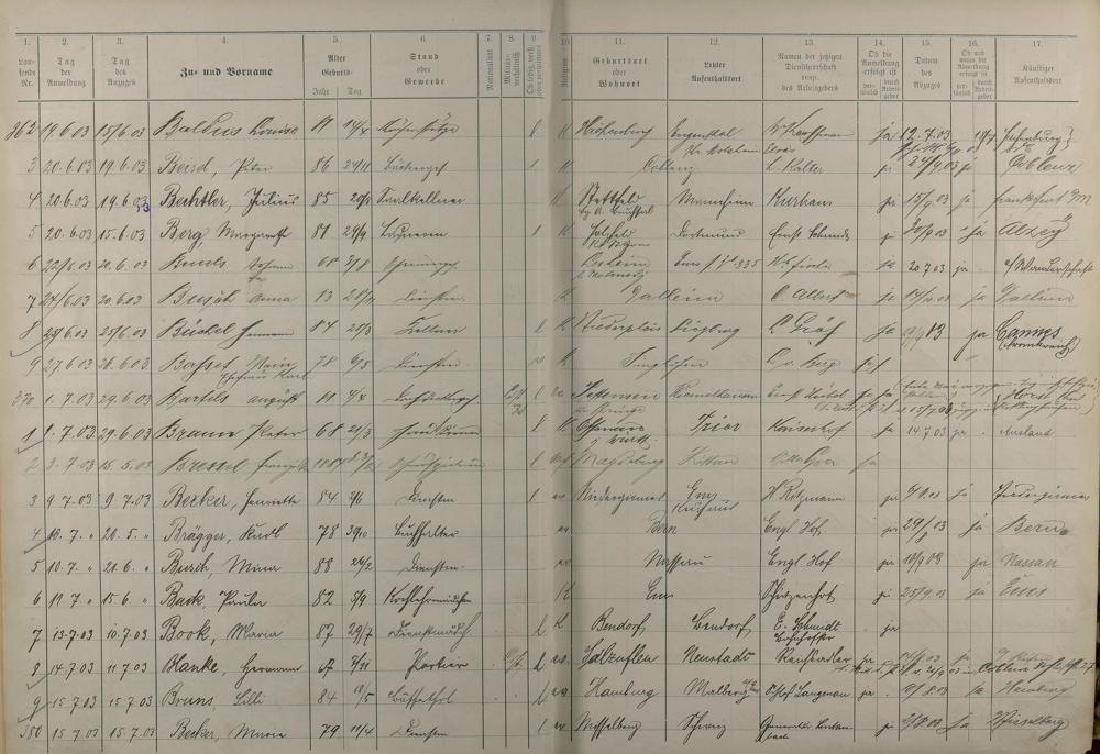 Melderegister der Gewerbegehilfen, Gesellen und Dienstboten 1902 - 1903