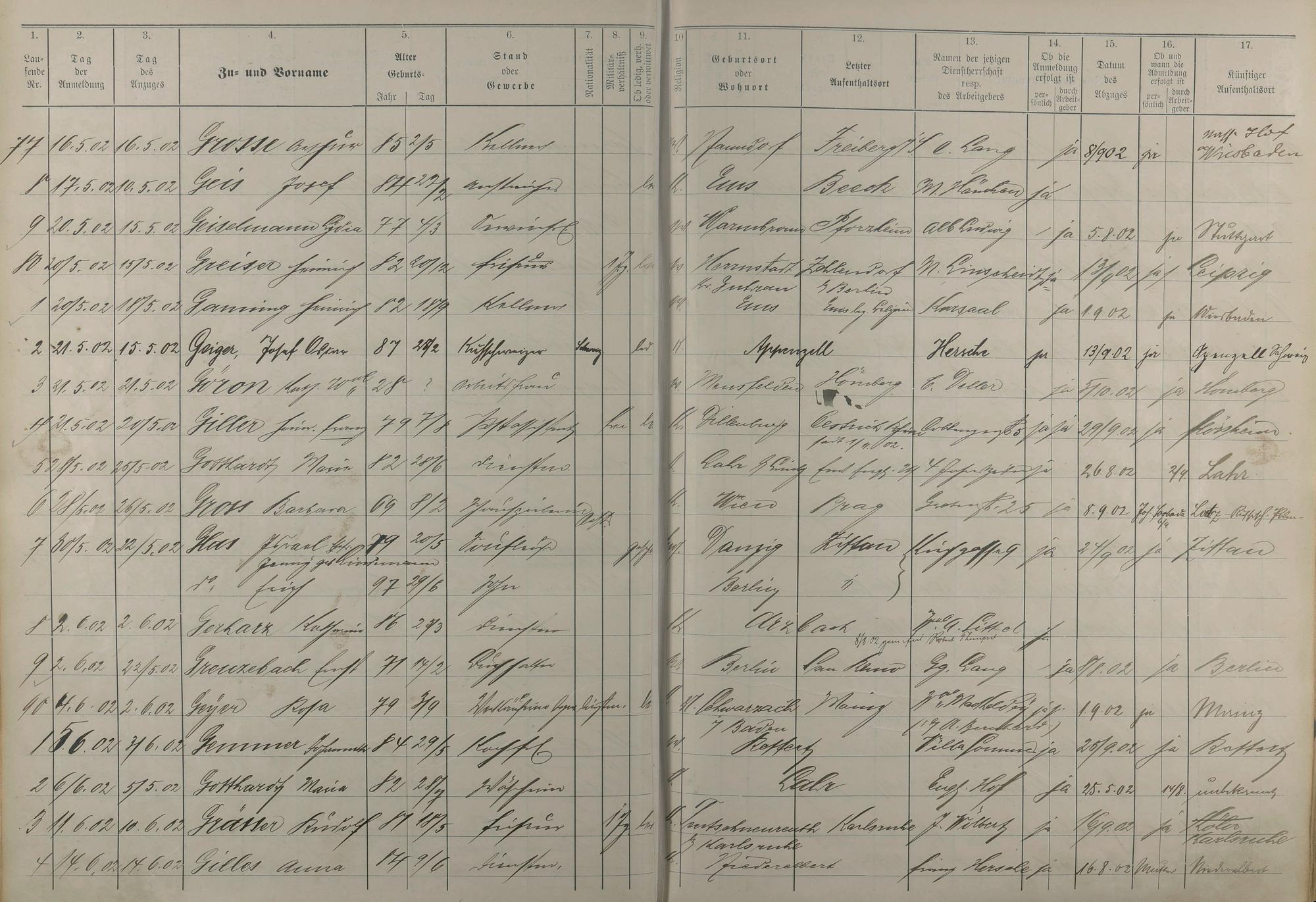 Melderegister der Gewerbegehilfen, Gesellen und Dienstboten 1902 - 1903