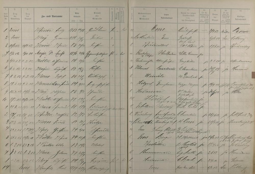 Melderegister der Gewerbegehilfen, Gesellen und Dienstboten 1902 - 1903