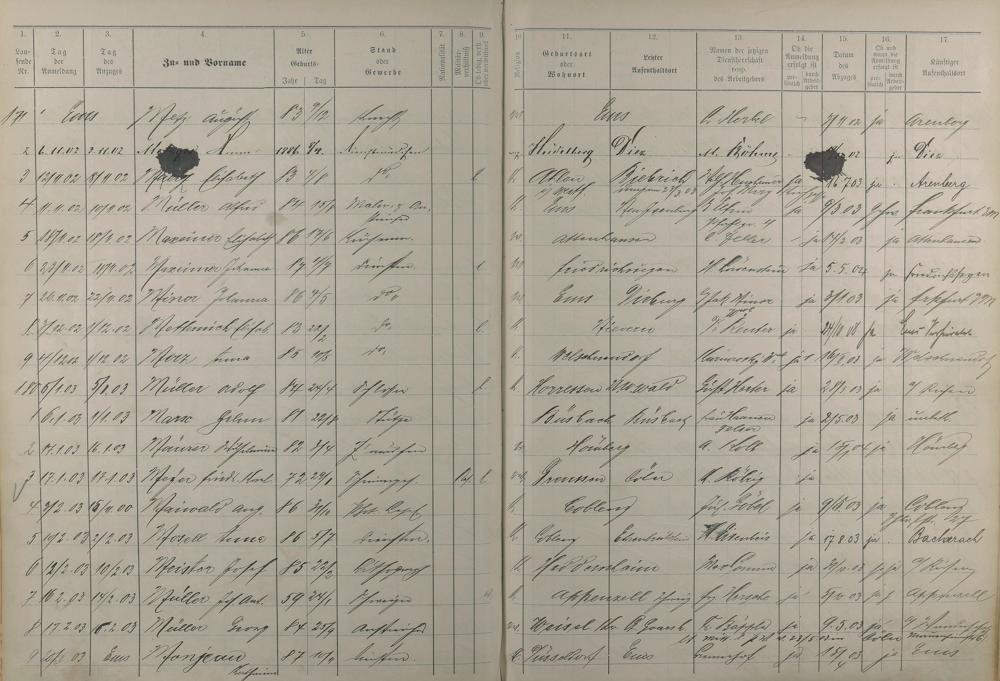 Melderegister der Gewerbegehilfen, Gesellen und Dienstboten 1902 - 1903