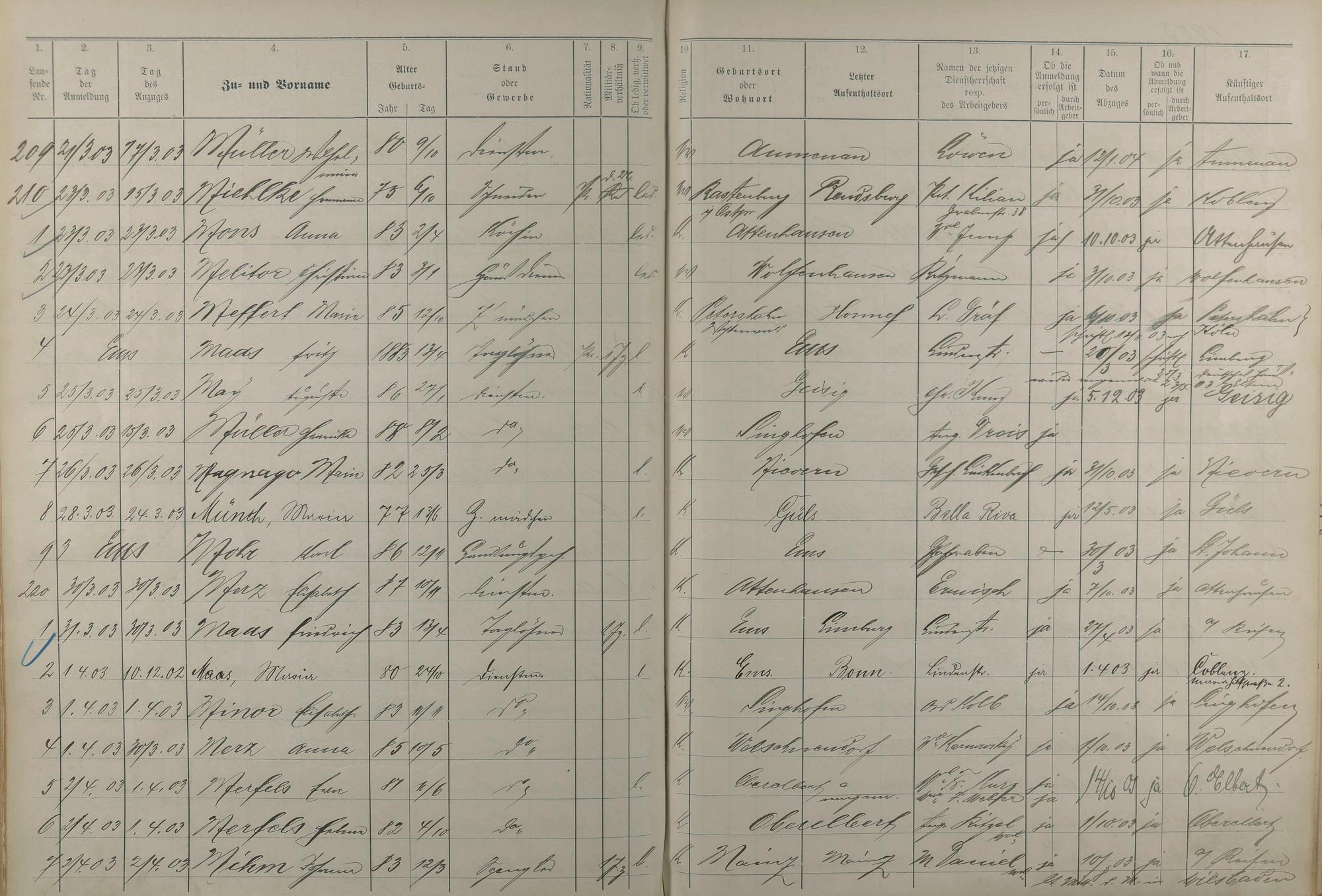 Melderegister der Gewerbegehilfen, Gesellen und Dienstboten 1902 - 1903