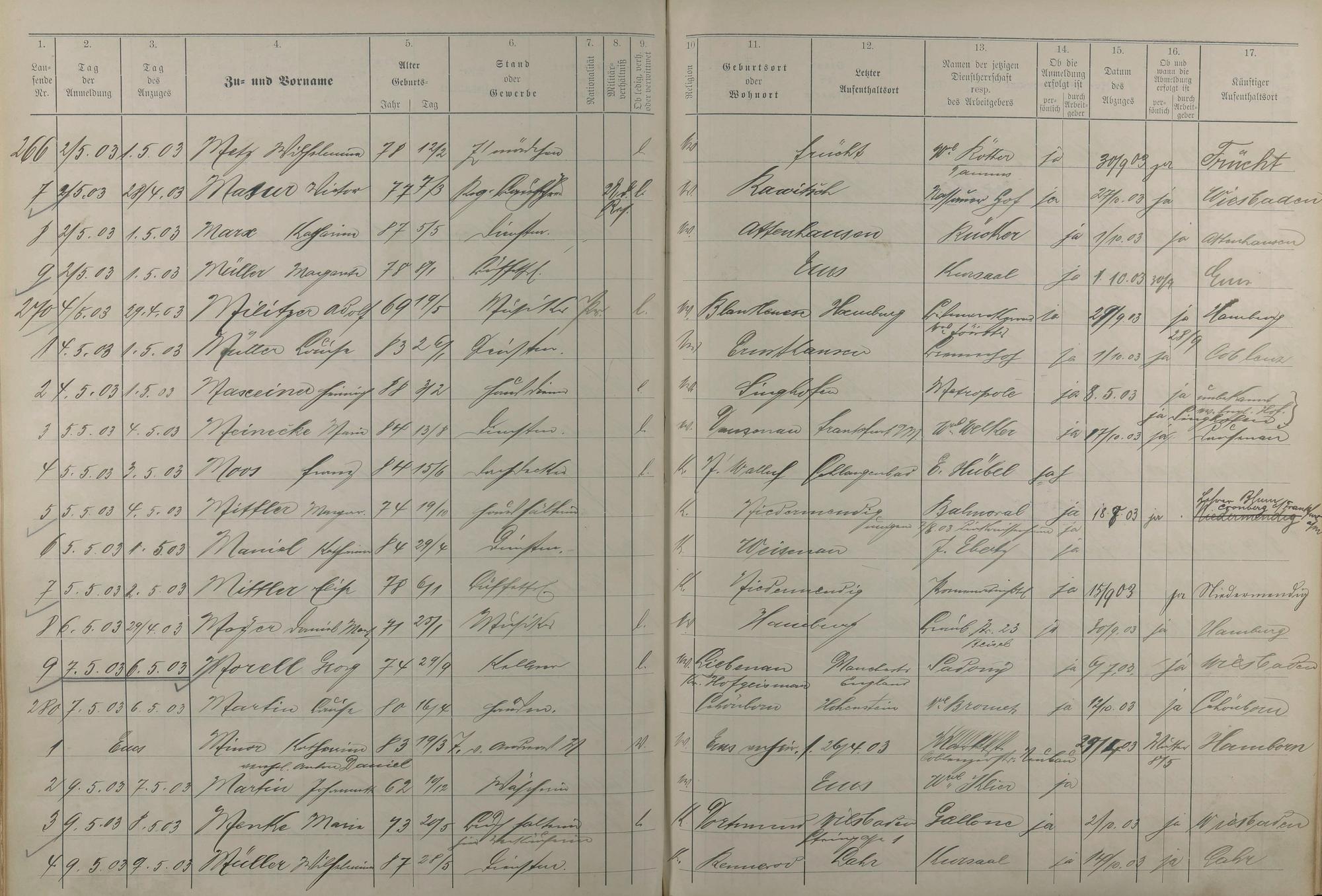 Melderegister der Gewerbegehilfen, Gesellen und Dienstboten 1902 - 1903