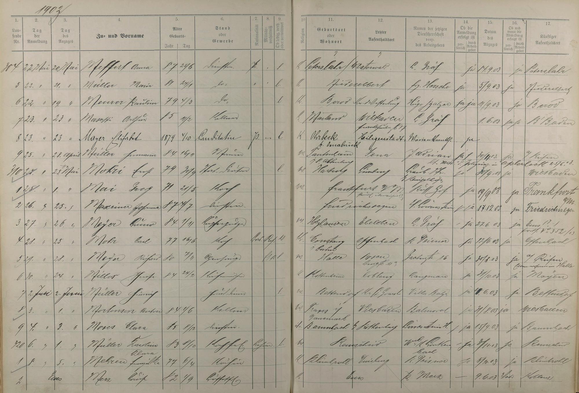 Melderegister der Gewerbegehilfen, Gesellen und Dienstboten 1902 - 1903