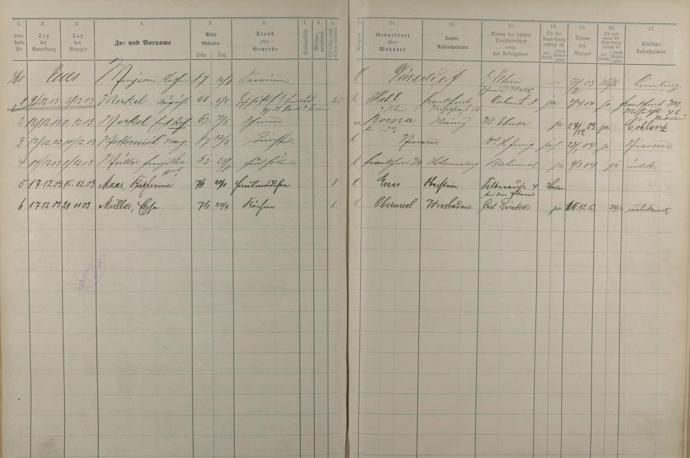 Melderegister der Gewerbegehilfen, Gesellen und Dienstboten 1902 - 1903