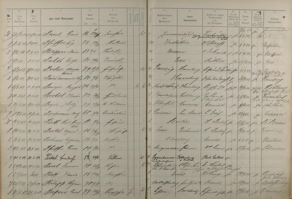 Melderegister der Gewerbegehilfen, Gesellen und Dienstboten 1902 - 1903