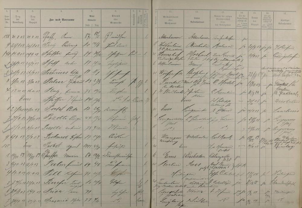Melderegister der Gewerbegehilfen, Gesellen und Dienstboten 1902 - 1903
