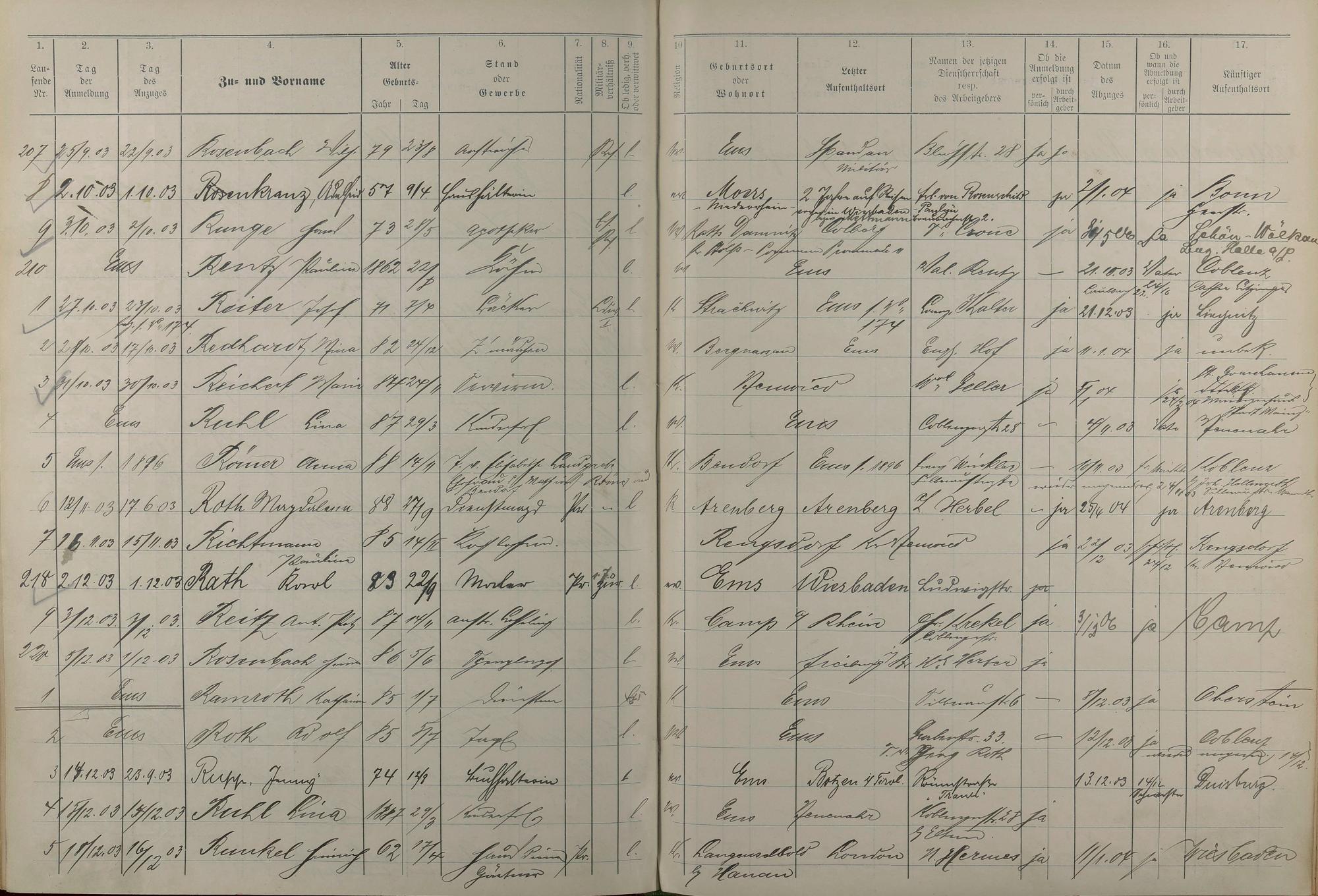 Melderegister der Gewerbegehilfen, Gesellen und Dienstboten 1902 - 1903