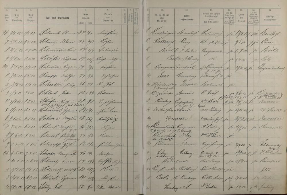 Melderegister der Gewerbegehilfen, Gesellen und Dienstboten 1902 - 1903