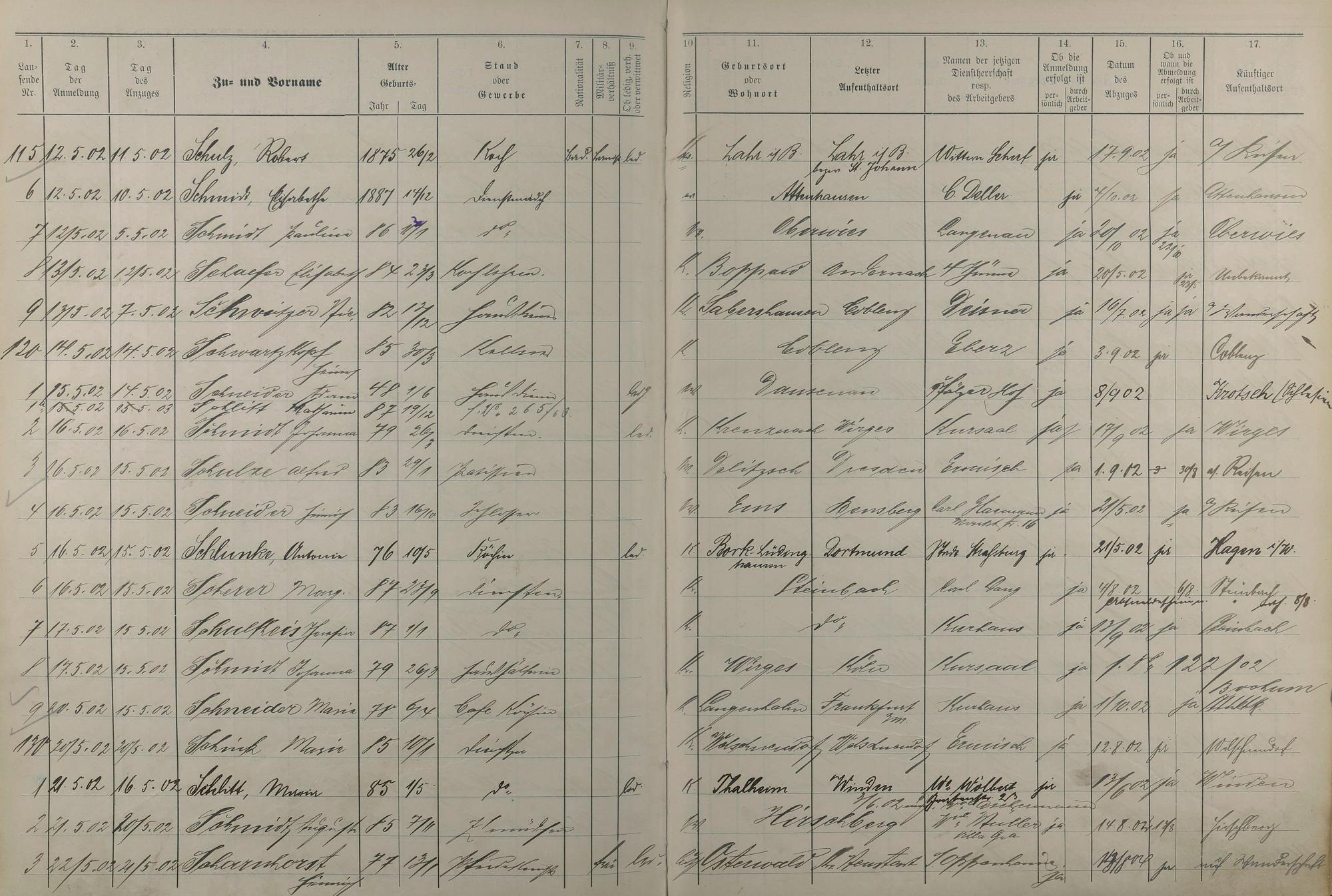 Melderegister der Gewerbegehilfen, Gesellen und Dienstboten 1902 - 1903