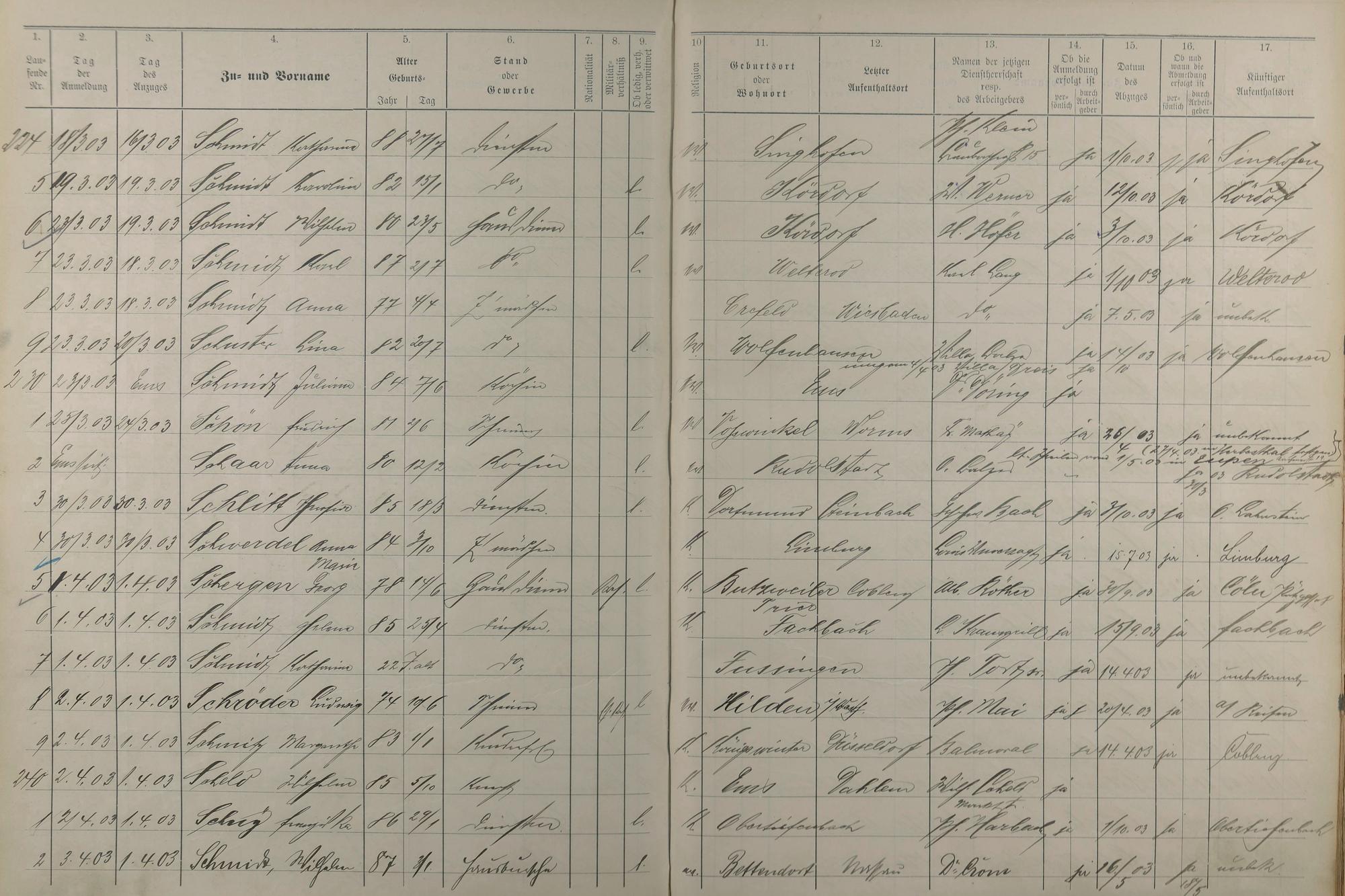 Melderegister der Gewerbegehilfen, Gesellen und Dienstboten 1902 - 1903