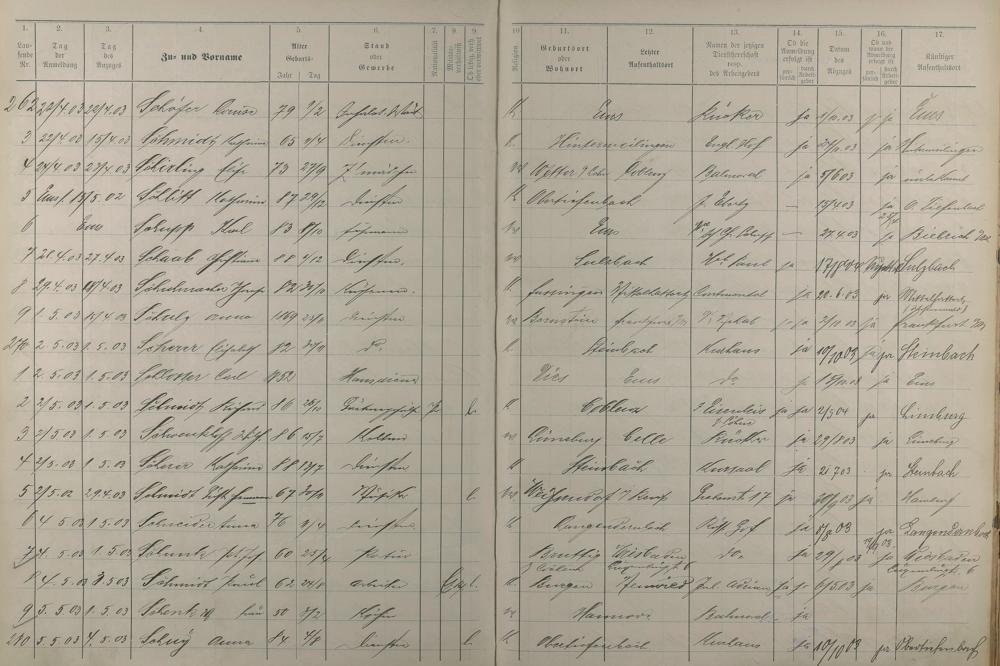 Melderegister der Gewerbegehilfen, Gesellen und Dienstboten 1902 - 1903