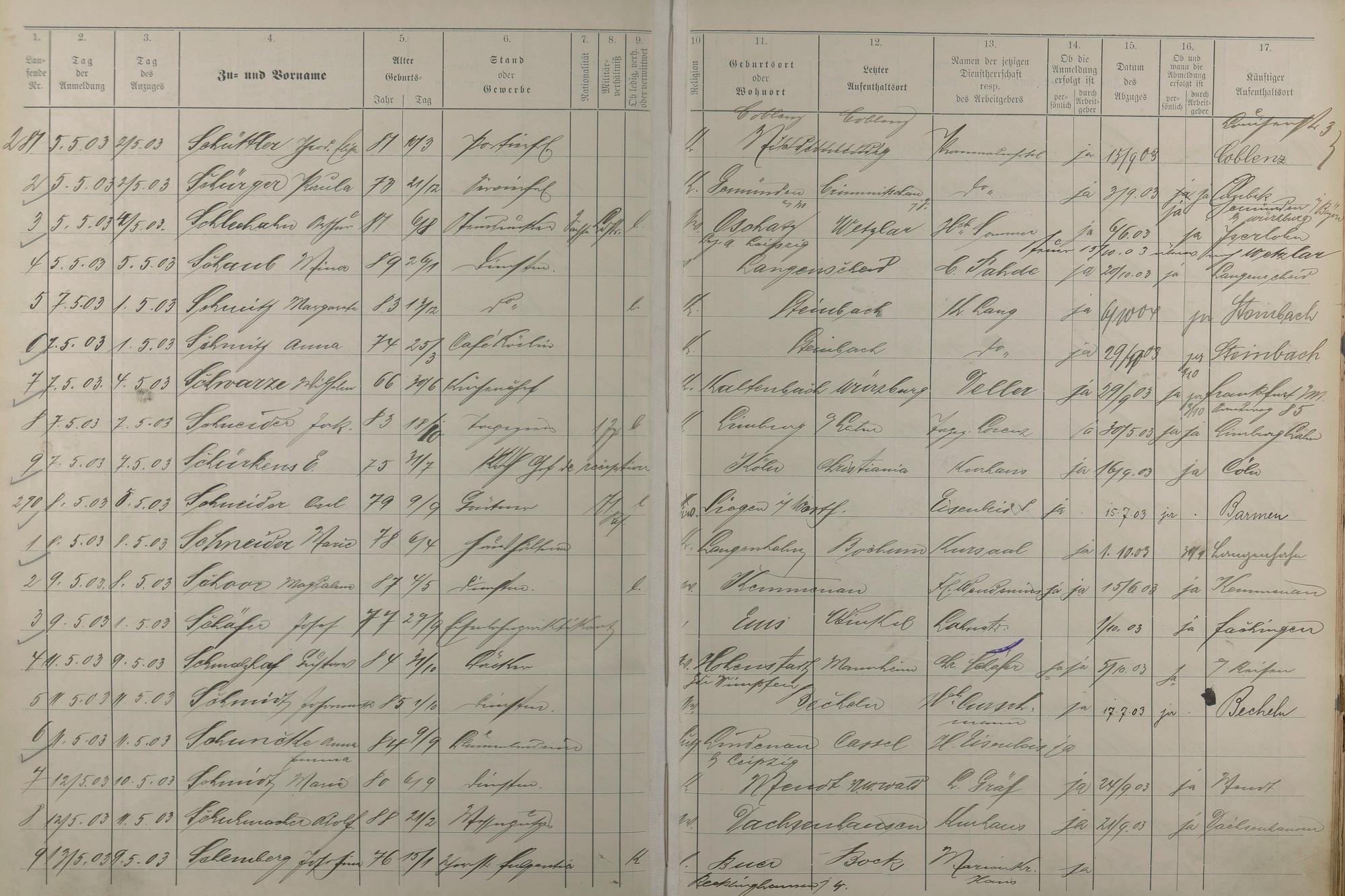 Melderegister der Gewerbegehilfen, Gesellen und Dienstboten 1902 - 1903