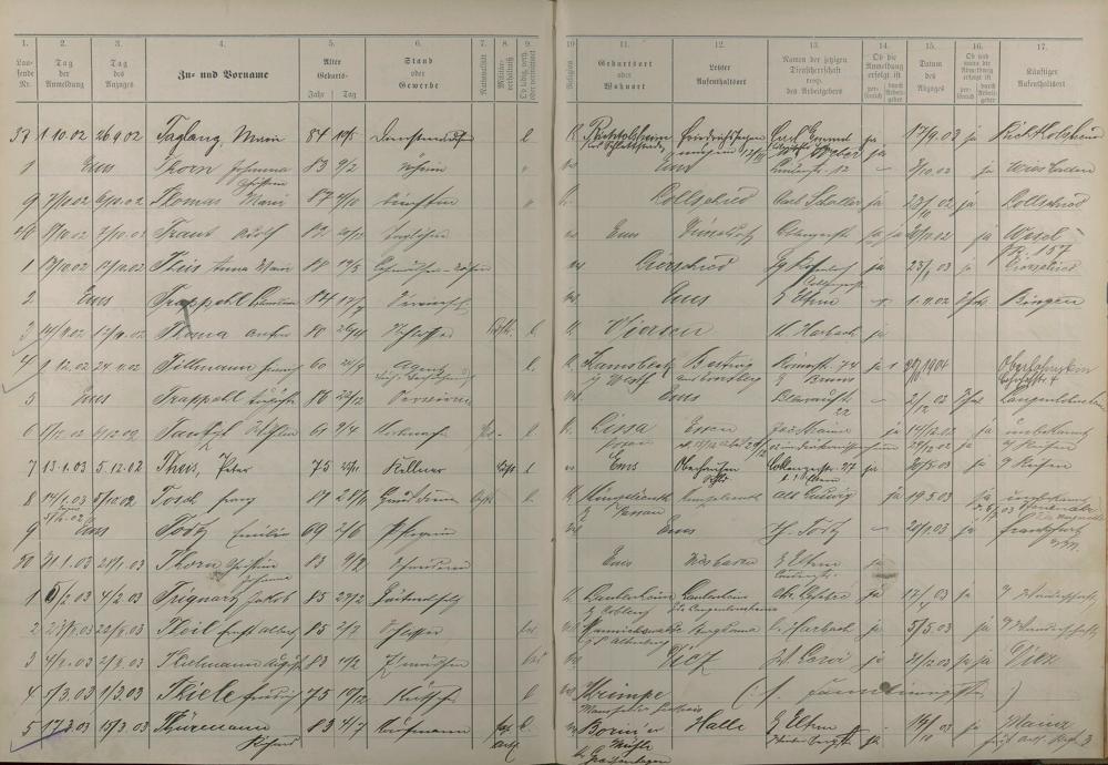 Melderegister der Gewerbegehilfen, Gesellen und Dienstboten 1902 - 1903