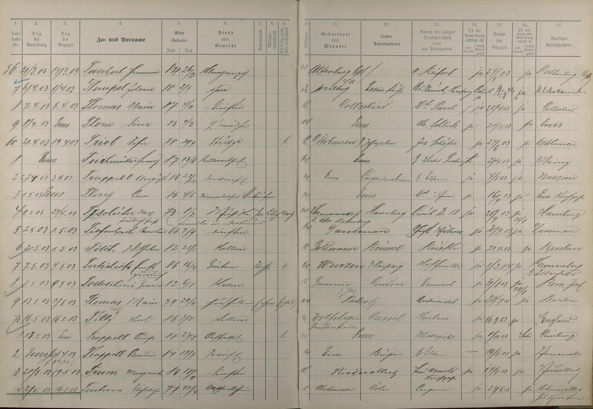 Melderegister der Gewerbegehilfen, Gesellen und Dienstboten 1902 - 1903