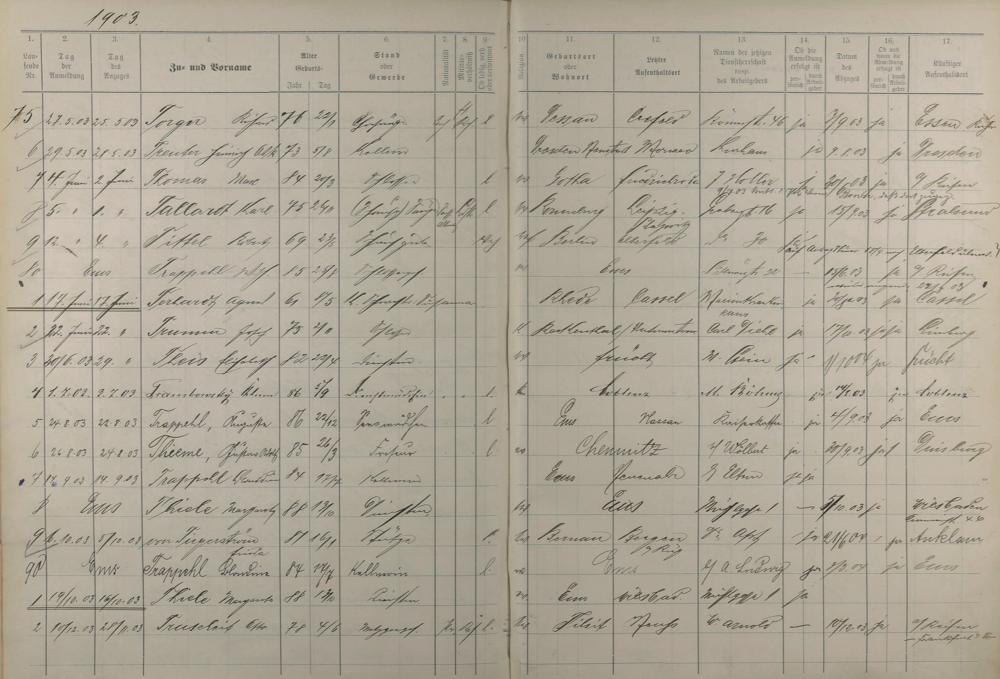 Melderegister der Gewerbegehilfen, Gesellen und Dienstboten 1902 - 1903
