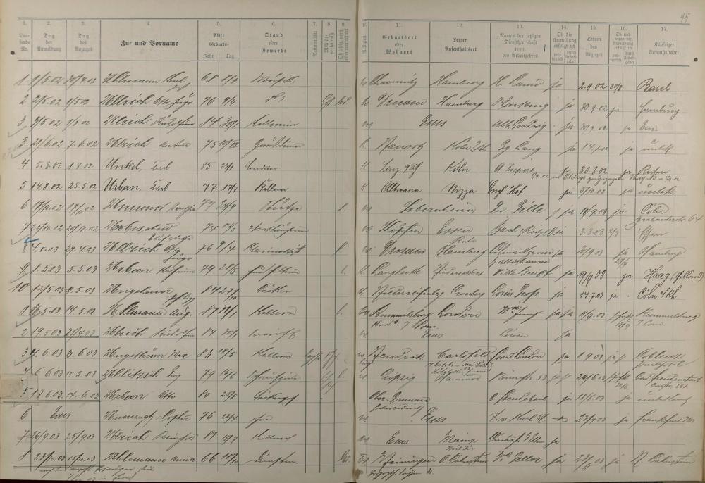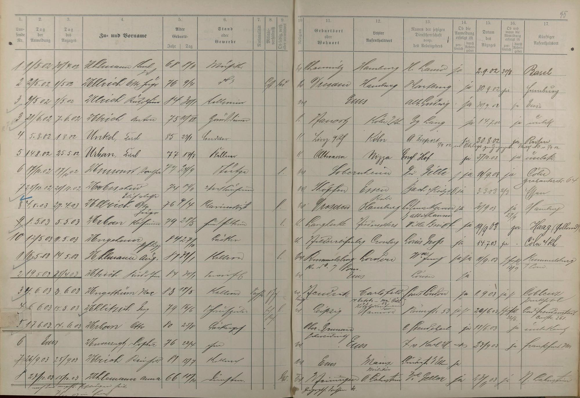 Melderegister der Gewerbegehilfen, Gesellen und Dienstboten 1902 - 1903