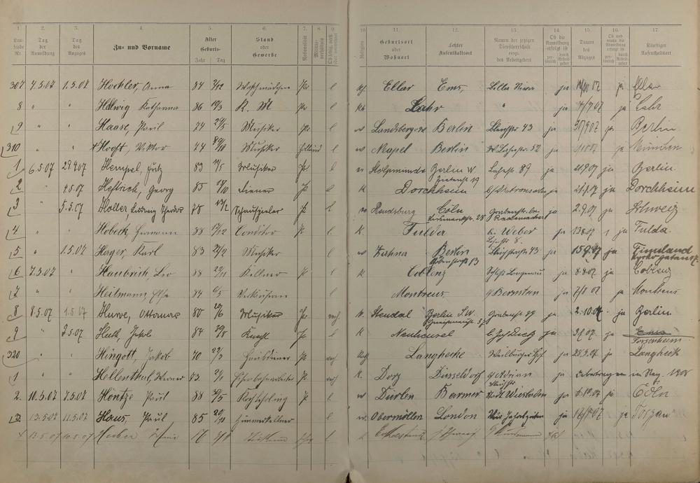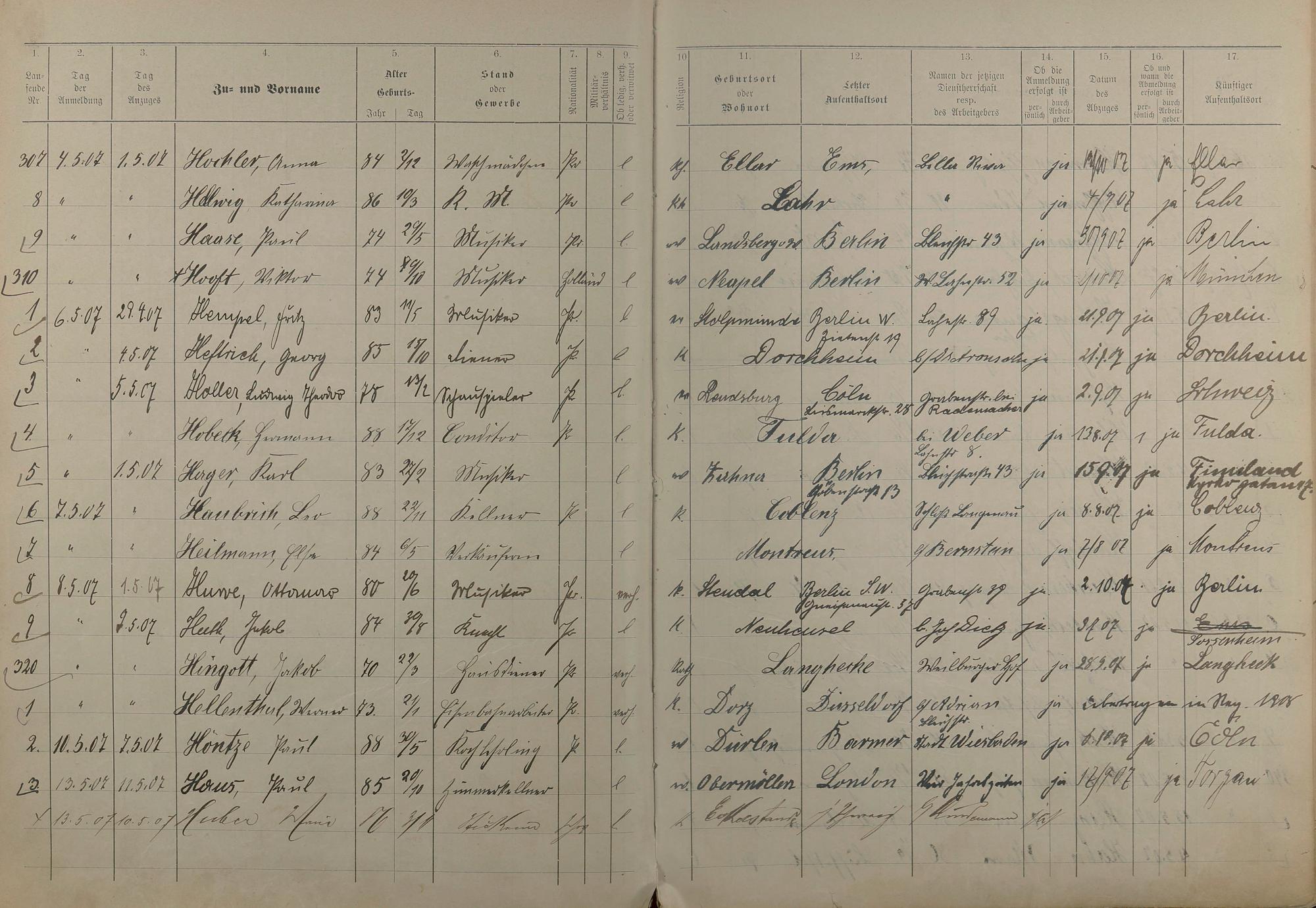 Melderegister der Gewerbegehilfen, Gesellen und Dienstboten 1906 - 1908