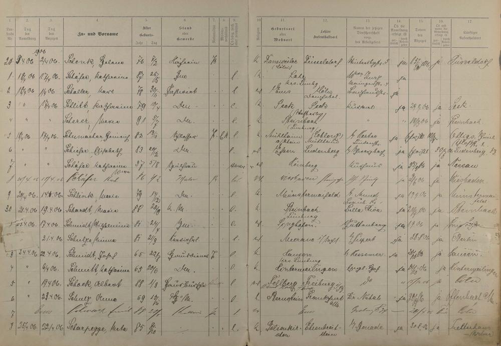 Melderegister der Gewerbegehilfen, Gesellen und Dienstboten 1906 - 1908