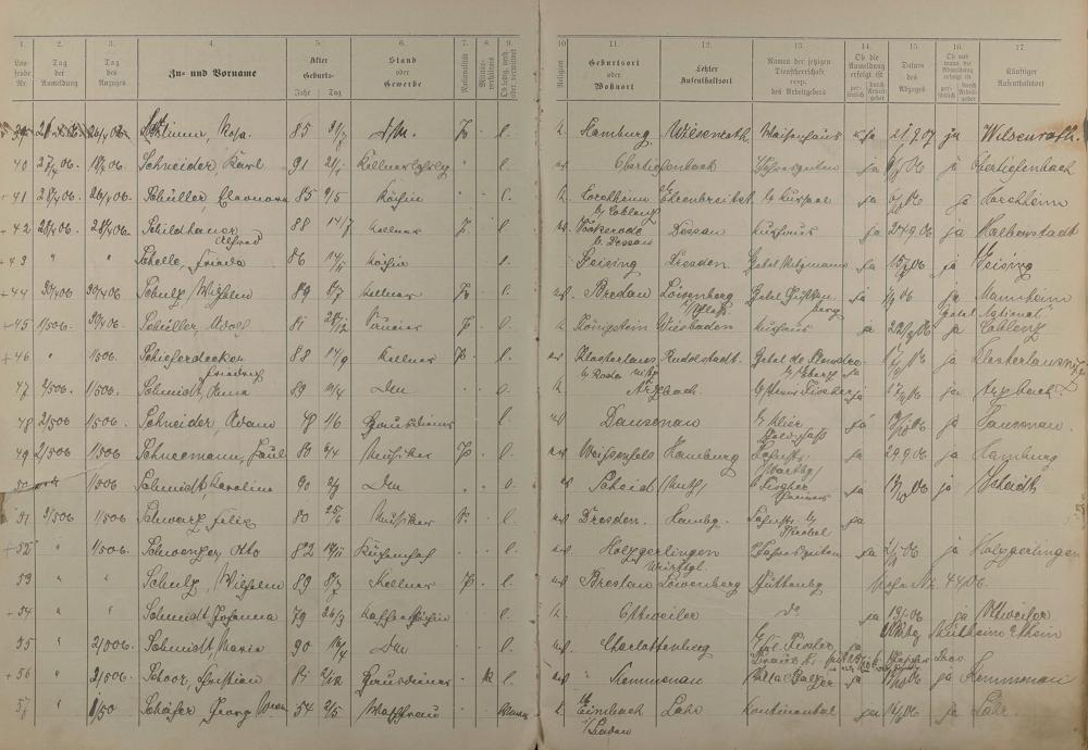 Melderegister der Gewerbegehilfen, Gesellen und Dienstboten 1906 - 1908