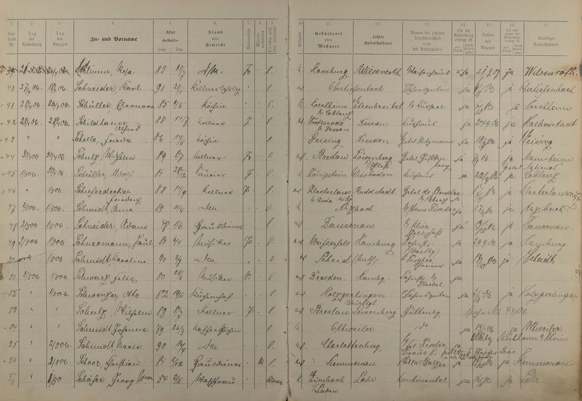 185: Melderegister der Gewerbegehilfen, Gesellen und Dienstboten 1906 - 1908
