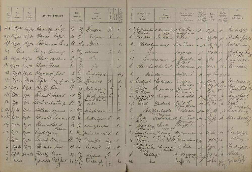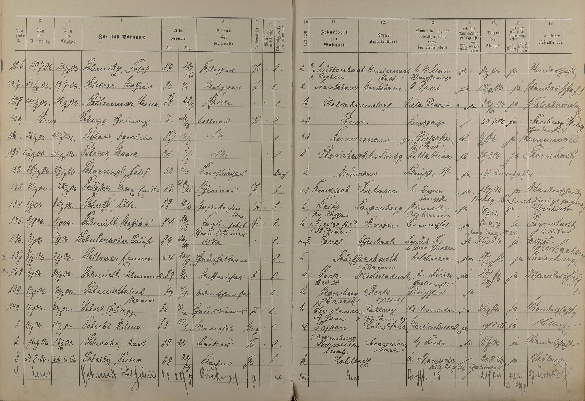 185: Melderegister der Gewerbegehilfen, Gesellen und Dienstboten 1906 - 1908