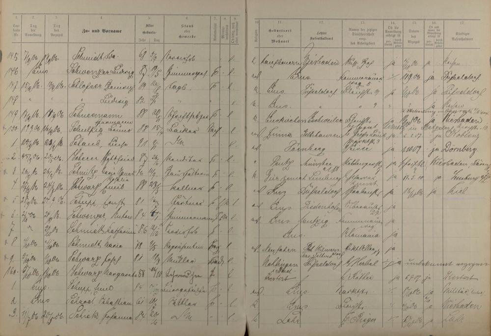 Melderegister der Gewerbegehilfen, Gesellen und Dienstboten 1906 - 1908