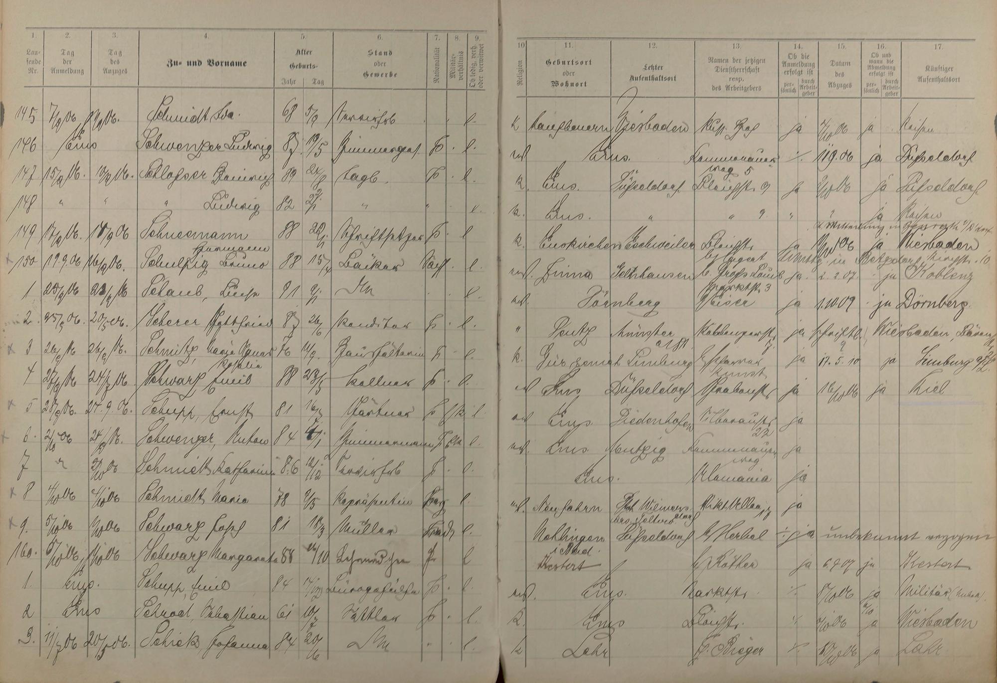 185: Melderegister der Gewerbegehilfen, Gesellen und Dienstboten 1906 - 1908