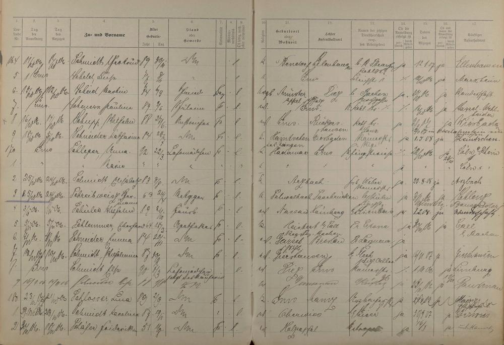 Melderegister der Gewerbegehilfen, Gesellen und Dienstboten 1906 - 1908