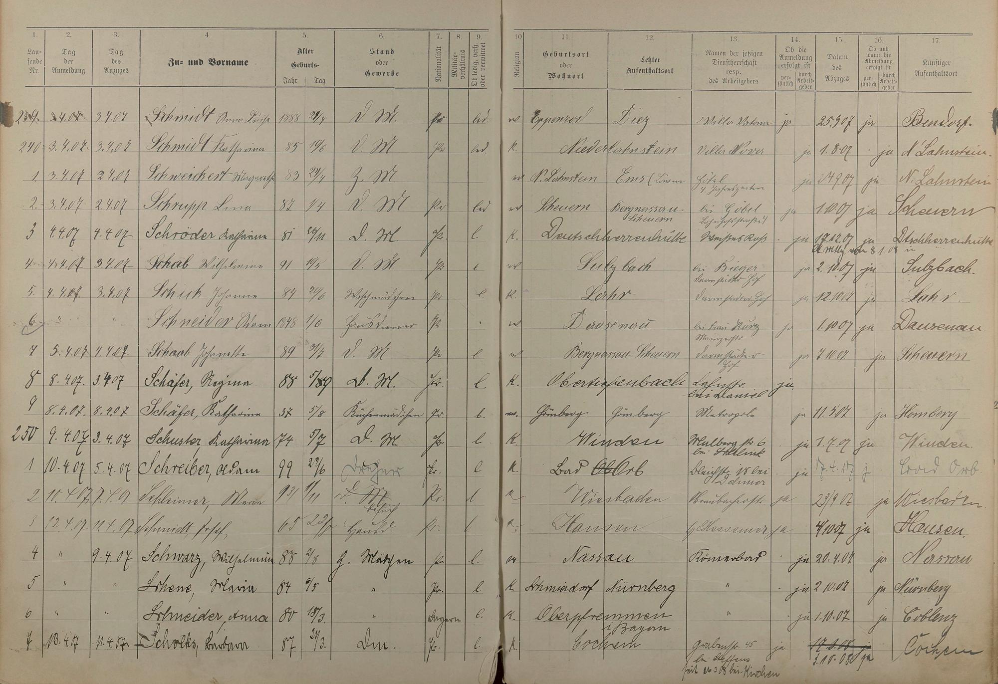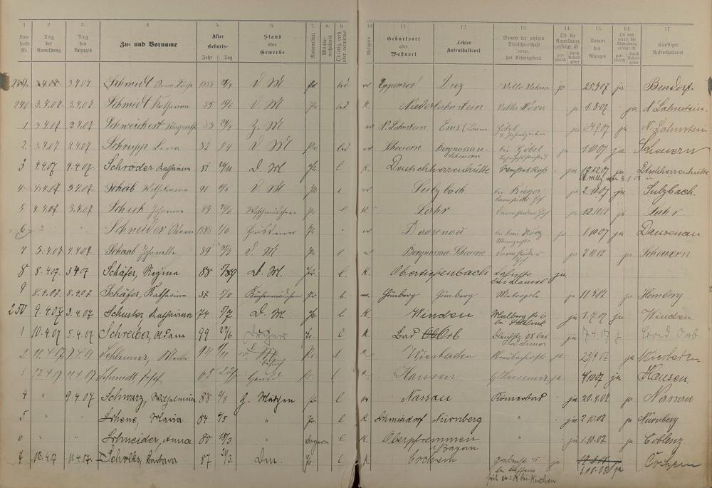 Melderegister der Gewerbegehilfen, Gesellen und Dienstboten 1906 - 1908