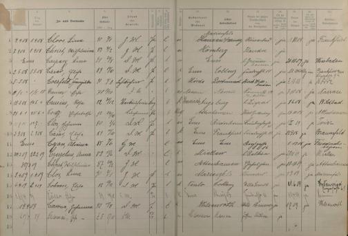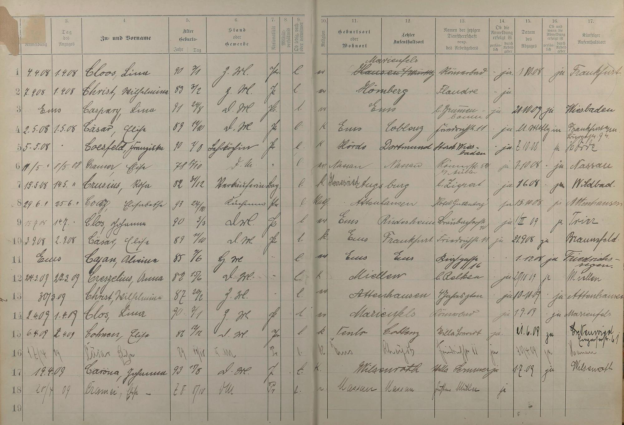 Melderegister der Gewerbegehilfinnen, Gesellinnen und Dienstbotinnen 1908 - 1910