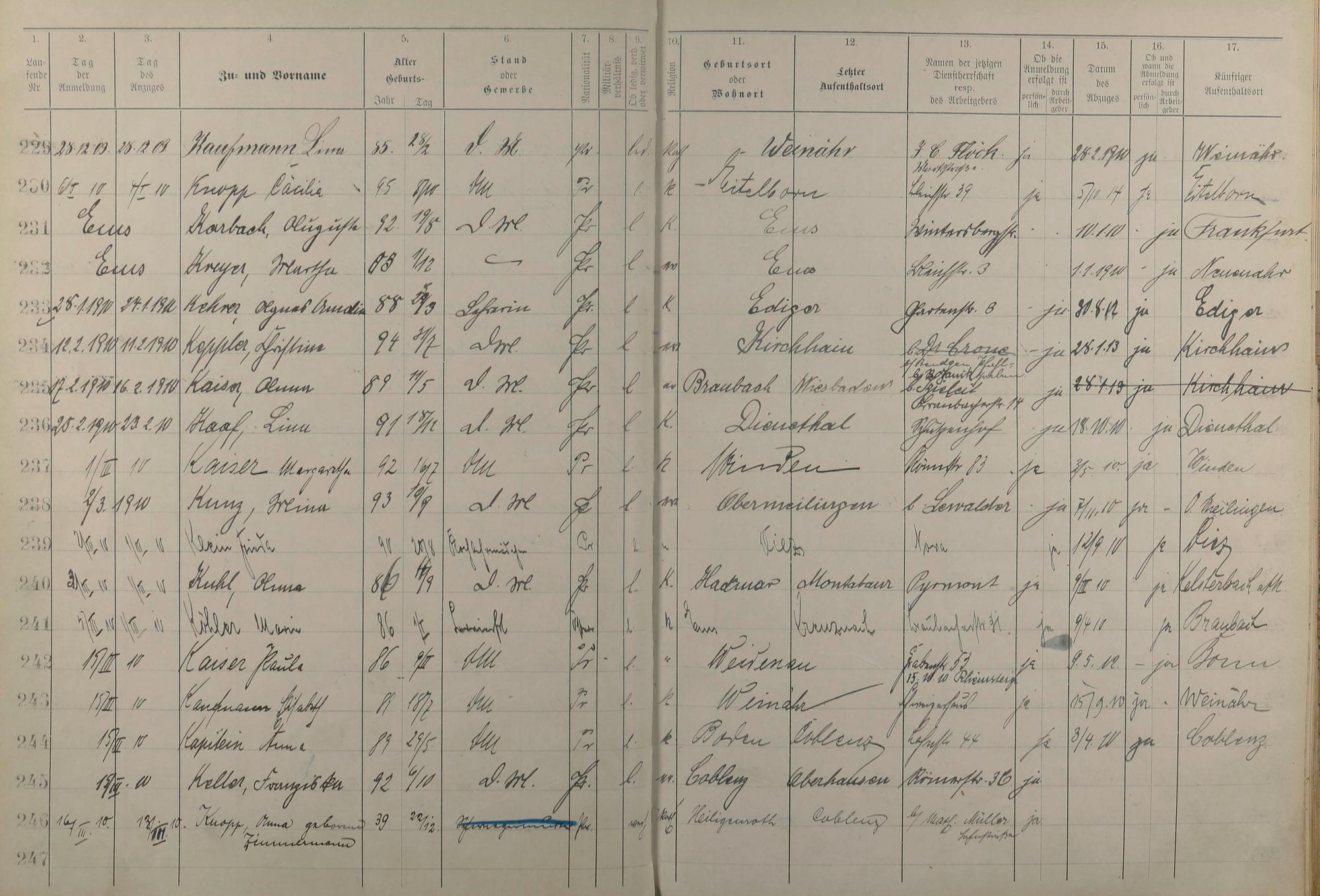 Melderegister der Gewerbegehilfinnen, Gesellinnen und Dienstbotinnen 1908 - 1910