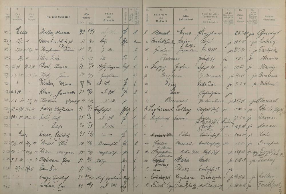 Melderegister der Gewerbegehilfinnen, Gesellinnen und Dienstbotinnen 1908 - 1910