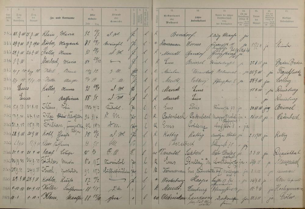 Melderegister der Gewerbegehilfinnen, Gesellinnen und Dienstbotinnen 1908 - 1910