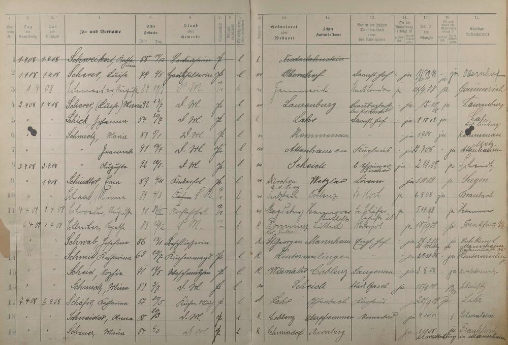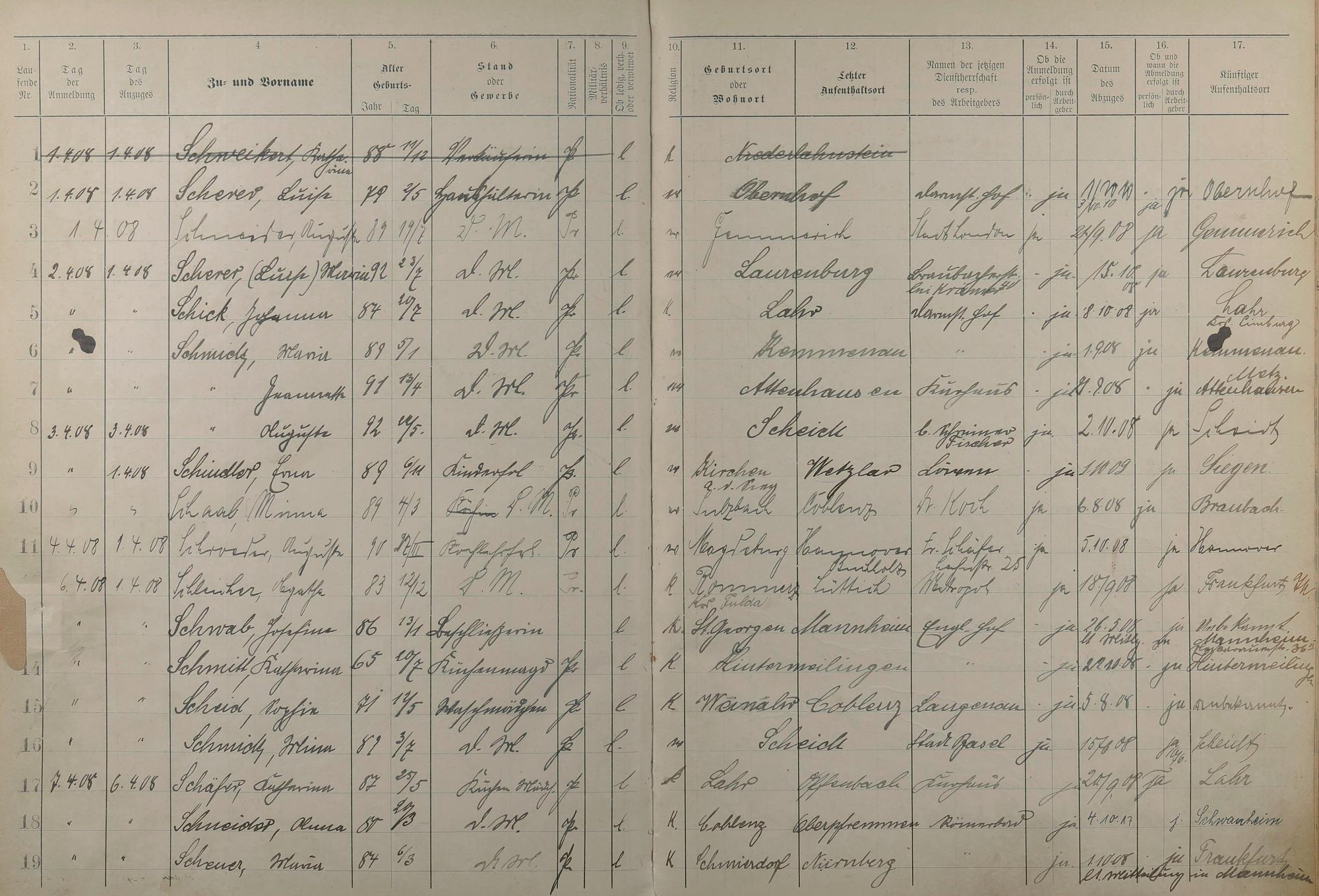 Melderegister der Gewerbegehilfinnen, Gesellinnen und Dienstbotinnen 1908 - 1910