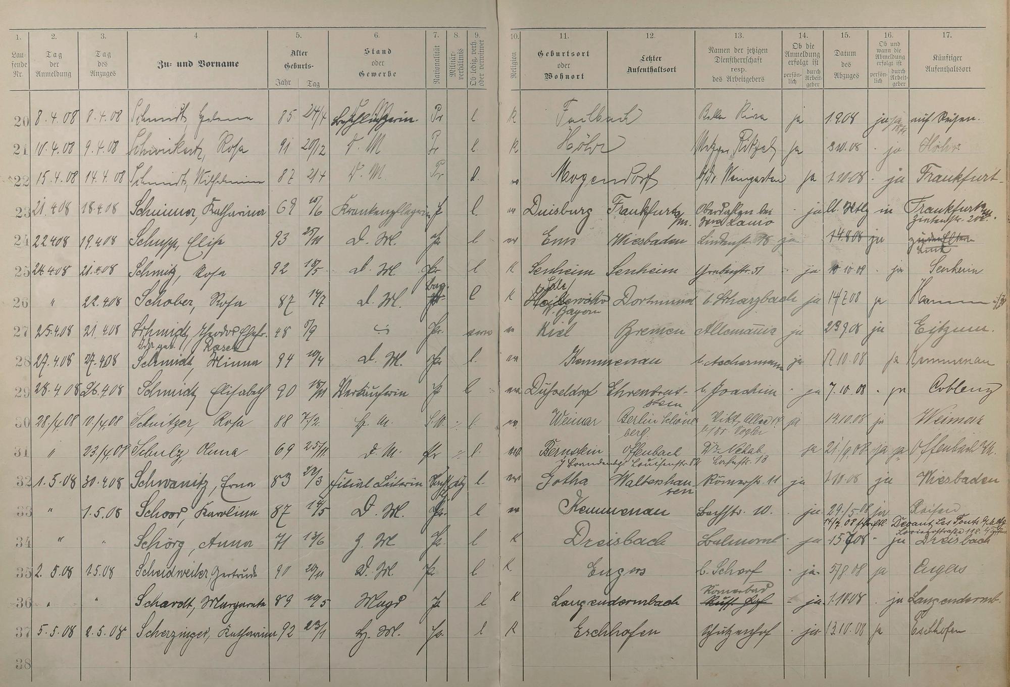 Melderegister der Gewerbegehilfinnen, Gesellinnen und Dienstbotinnen 1908 - 1910
