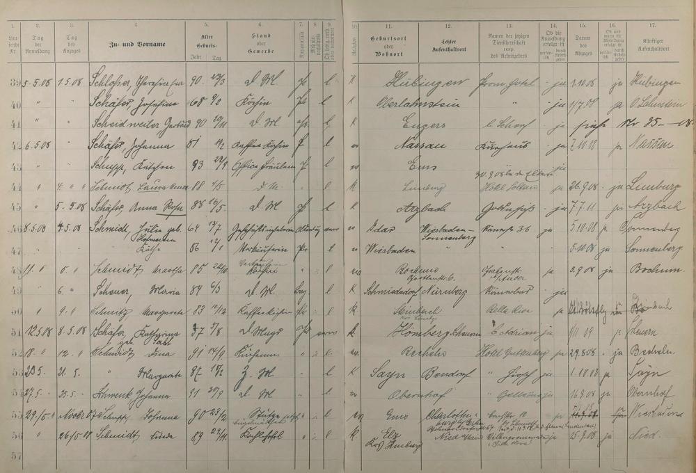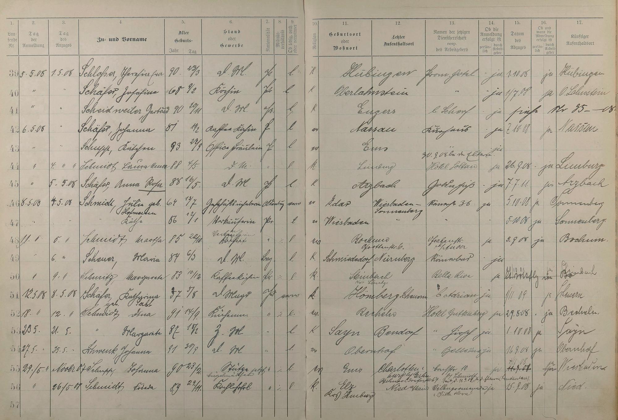 Melderegister der Gewerbegehilfinnen, Gesellinnen und Dienstbotinnen 1908 - 1910