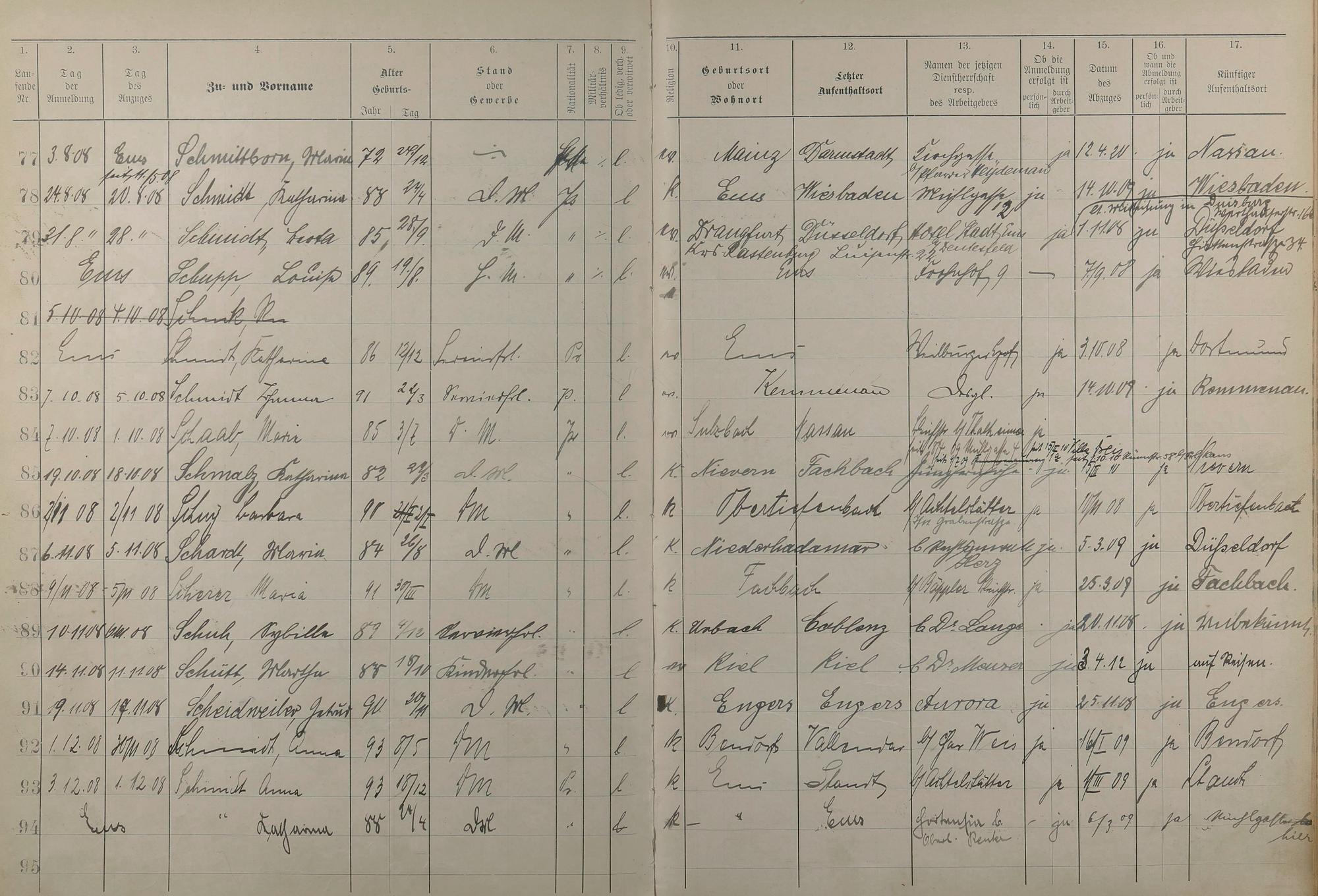 Melderegister der Gewerbegehilfinnen, Gesellinnen und Dienstbotinnen 1908 - 1910