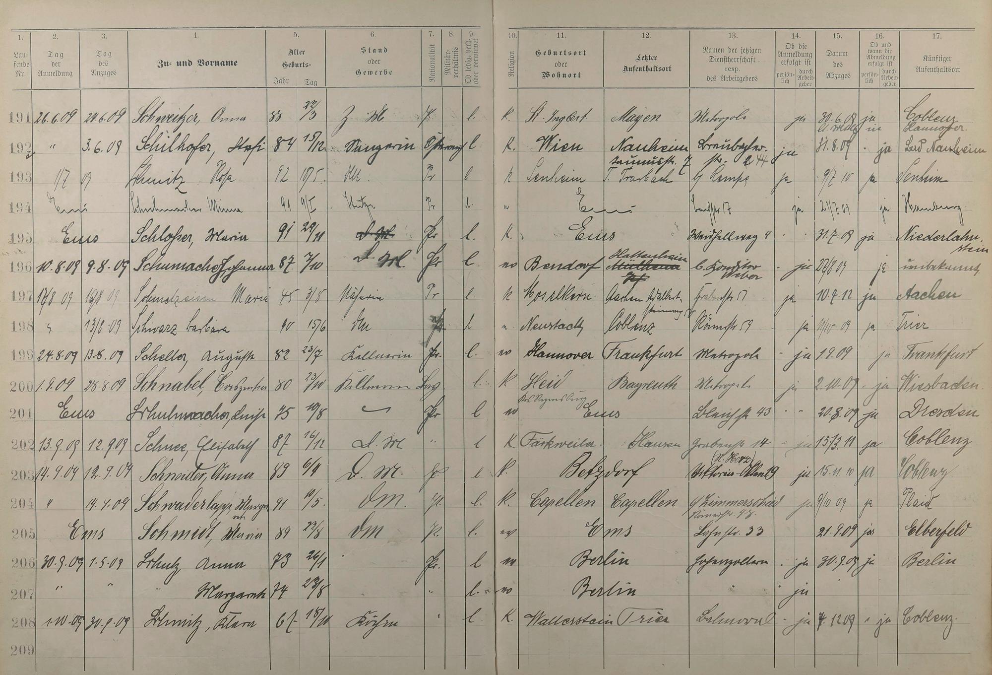 Melderegister der Gewerbegehilfinnen, Gesellinnen und Dienstbotinnen 1908 - 1910