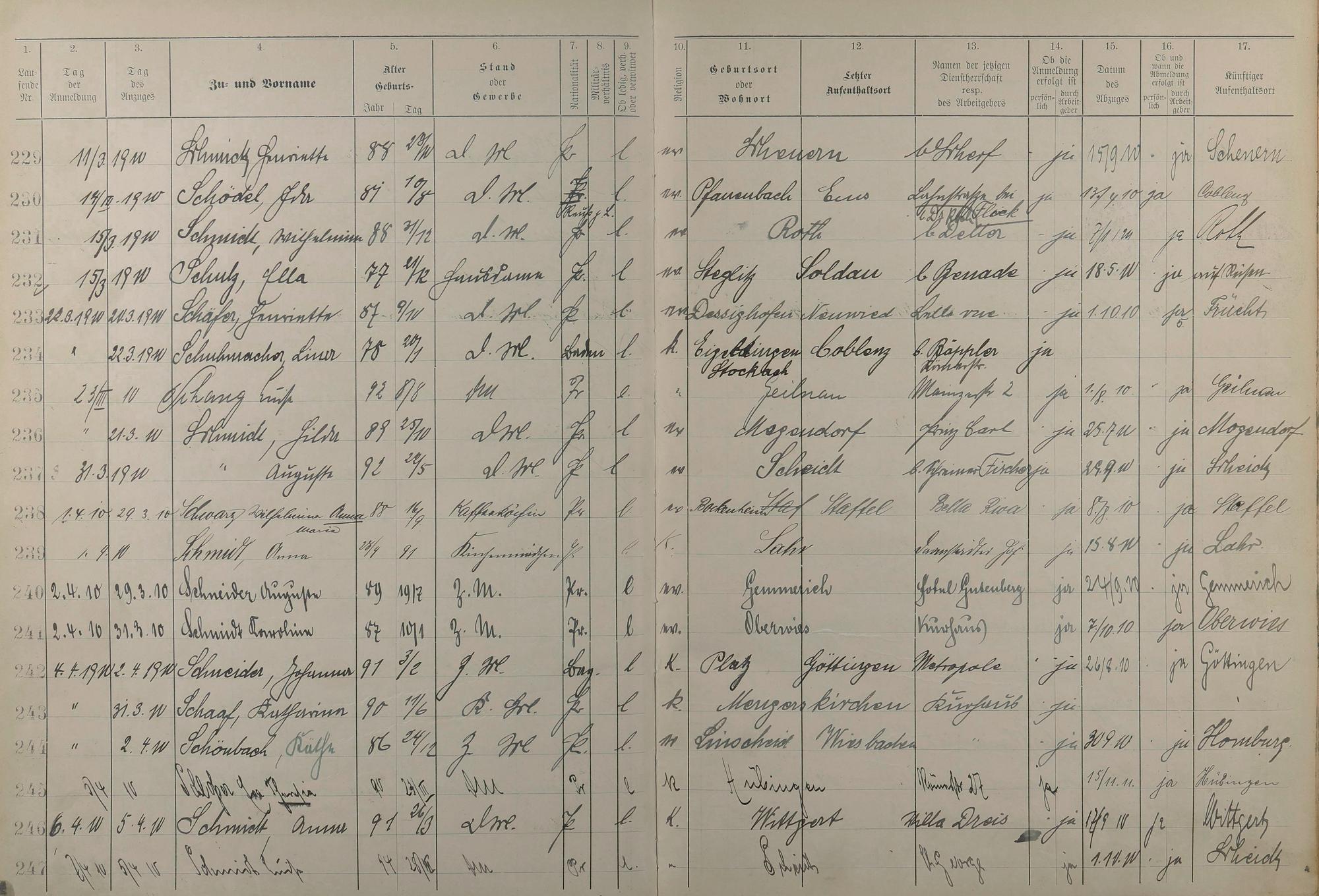 Melderegister der Gewerbegehilfinnen, Gesellinnen und Dienstbotinnen 1908 - 1910