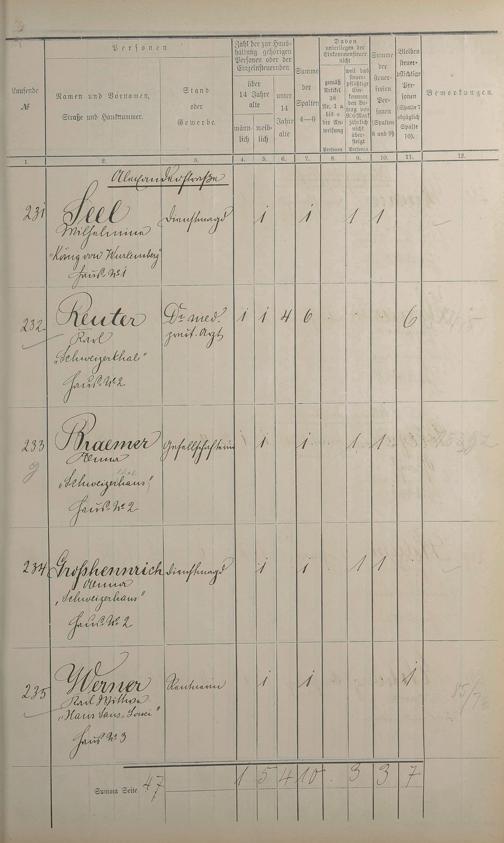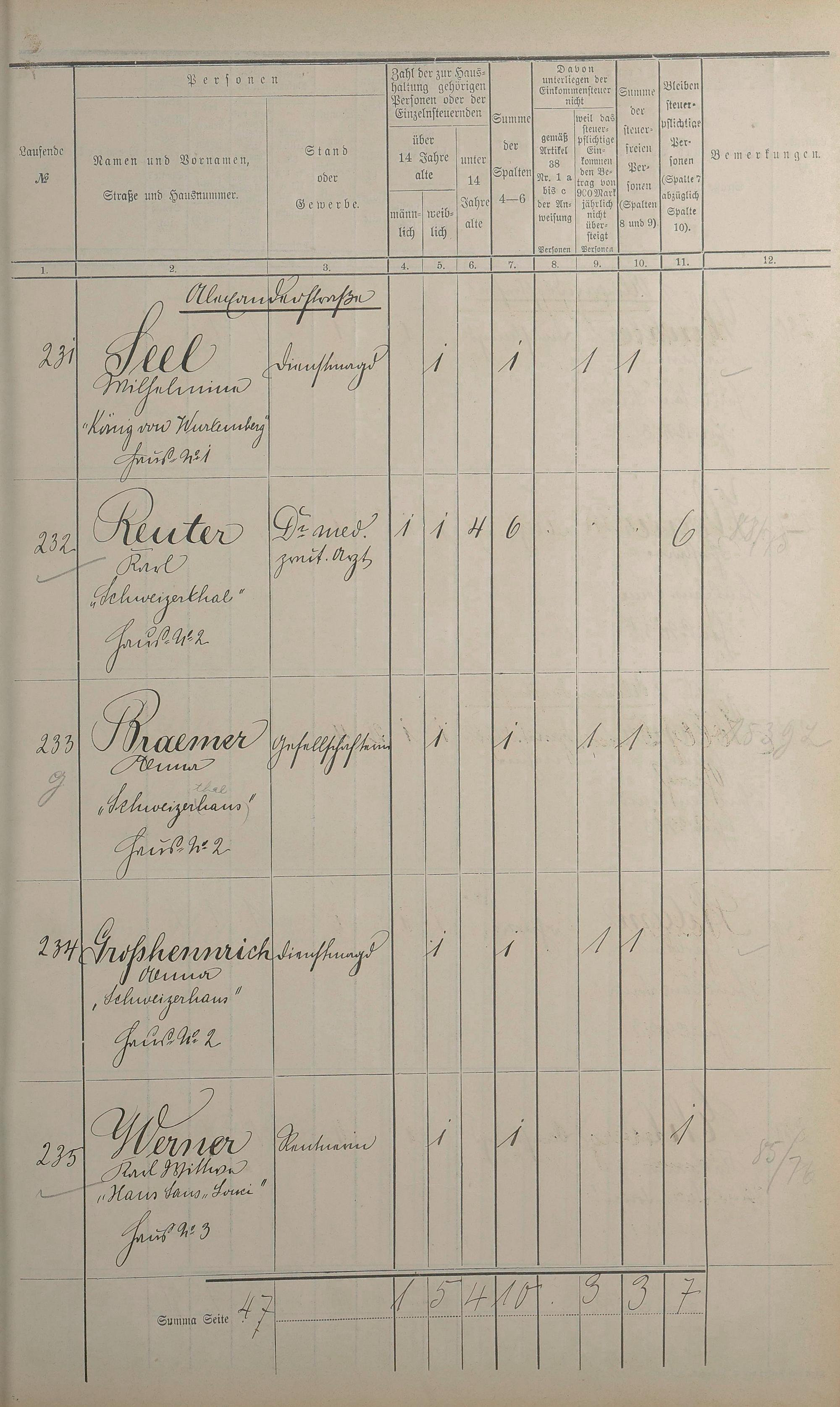 Einwohnerverzeichnis nach Straßen und Anzahl der steuerpflichtigen Personen