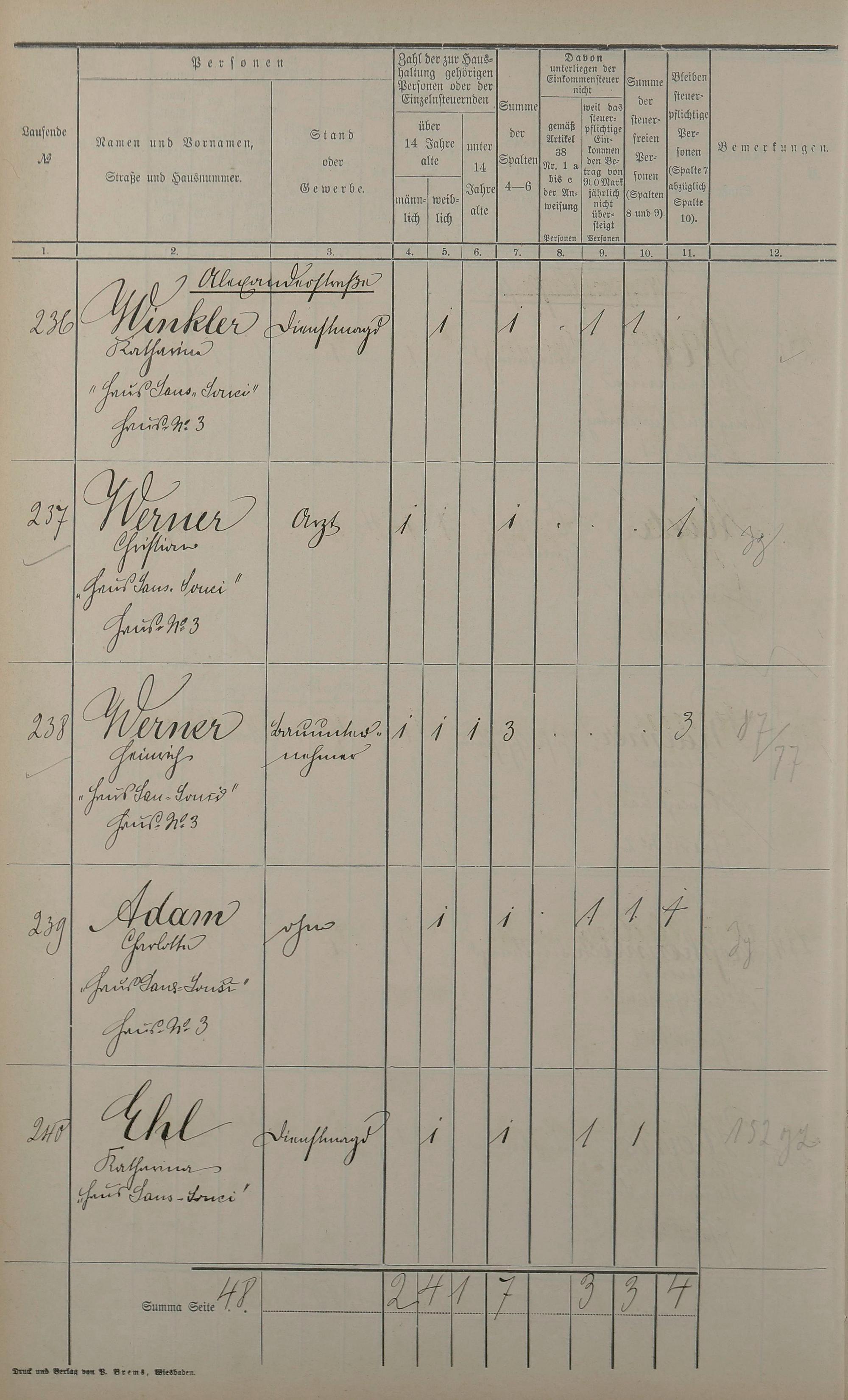 219: Einwohnerverzeichnis nach Straßen und Anzahl der steuerpflichtigen Personen