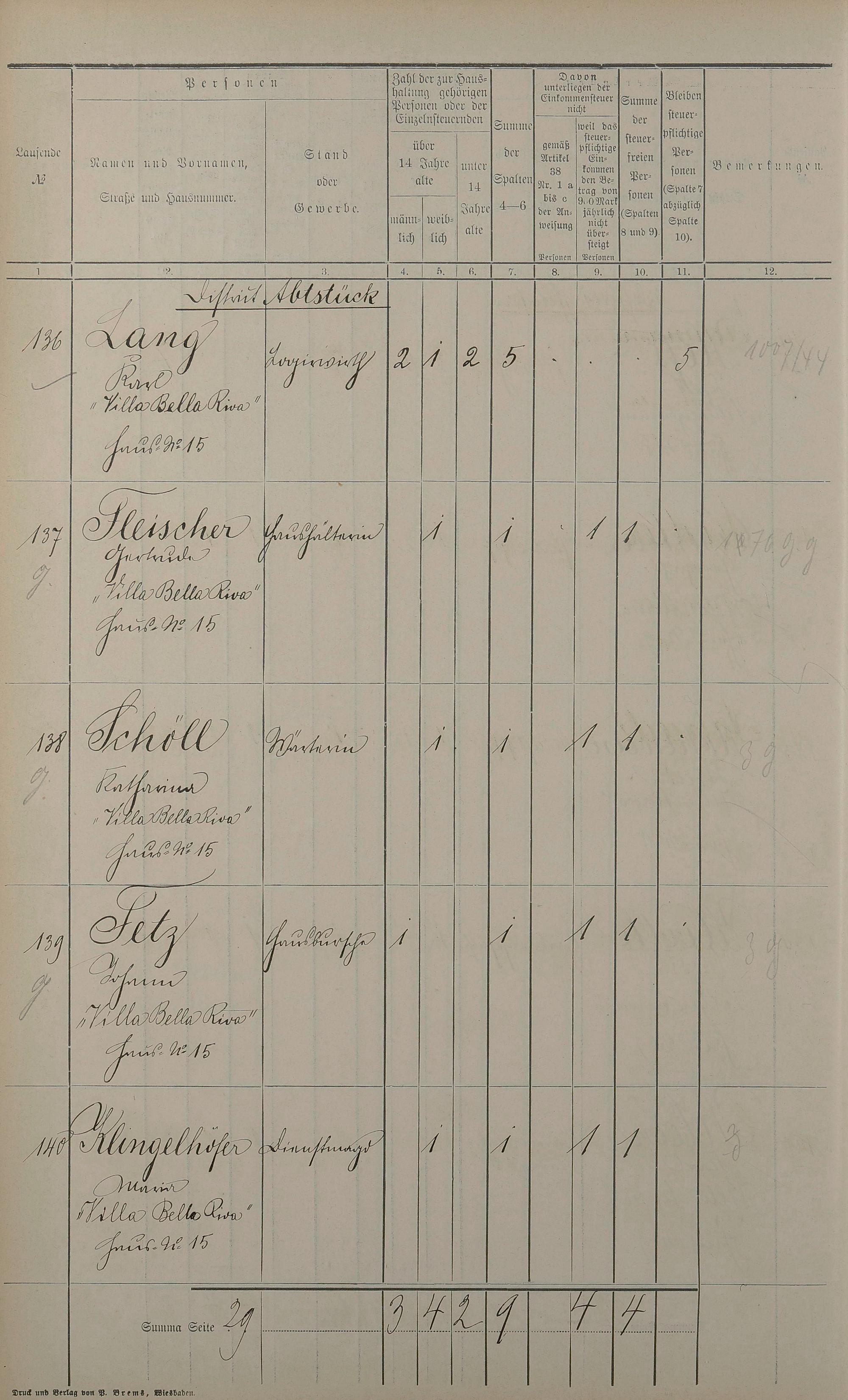 219: Einwohnerverzeichnis nach Straßen und Anzahl der steuerpflichtigen Personen