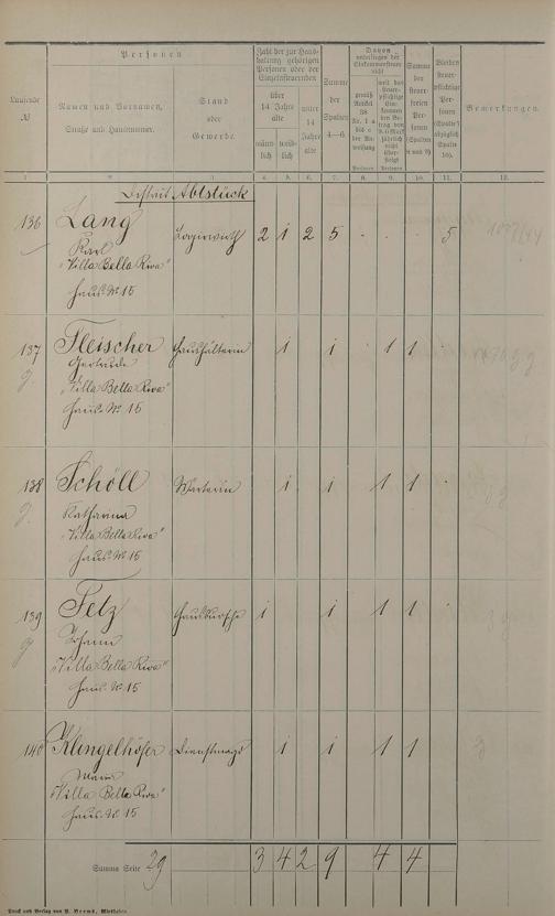 Einwohnerverzeichnis nach Straßen und Anzahl der steuerpflichtigen Personen