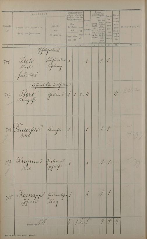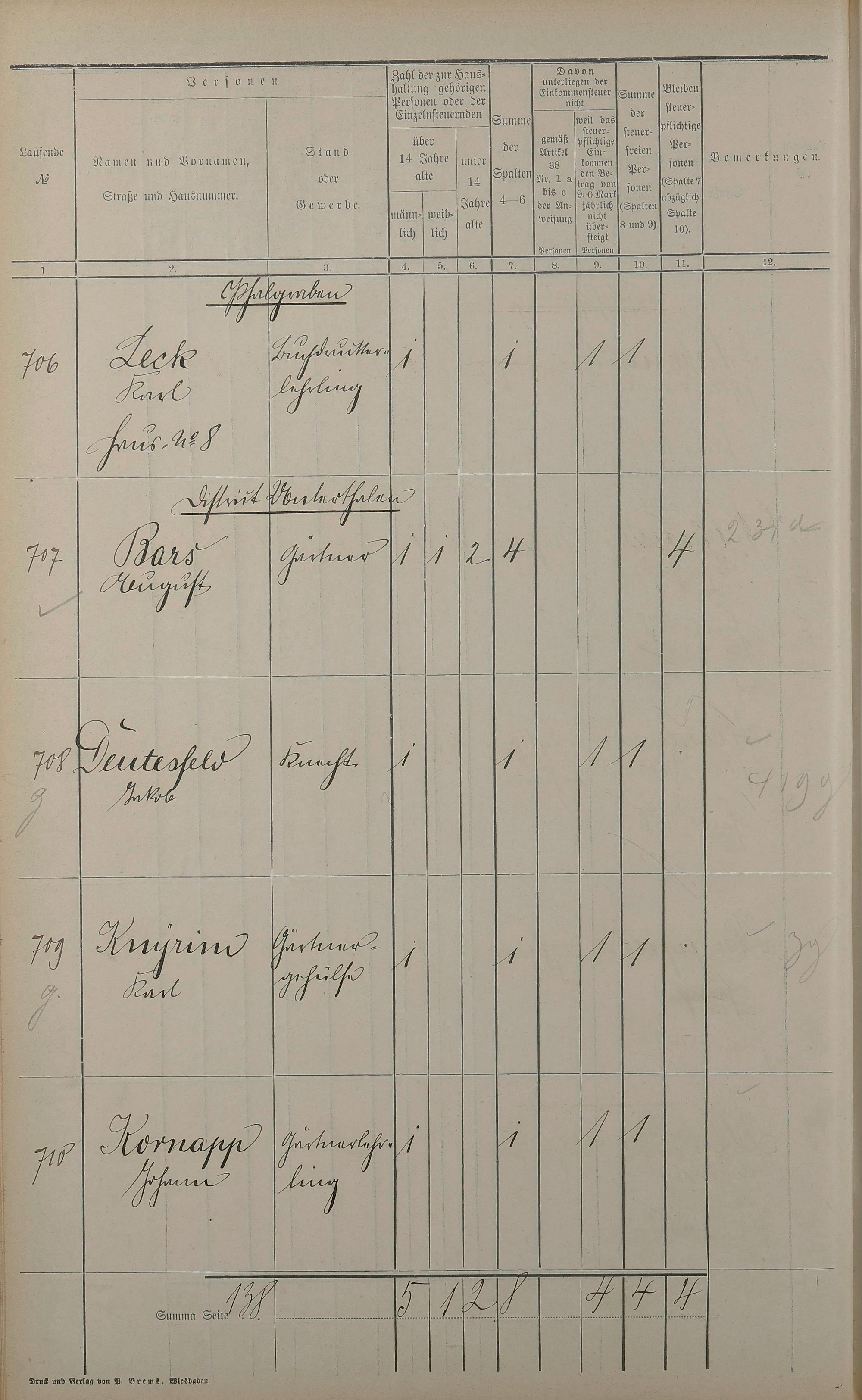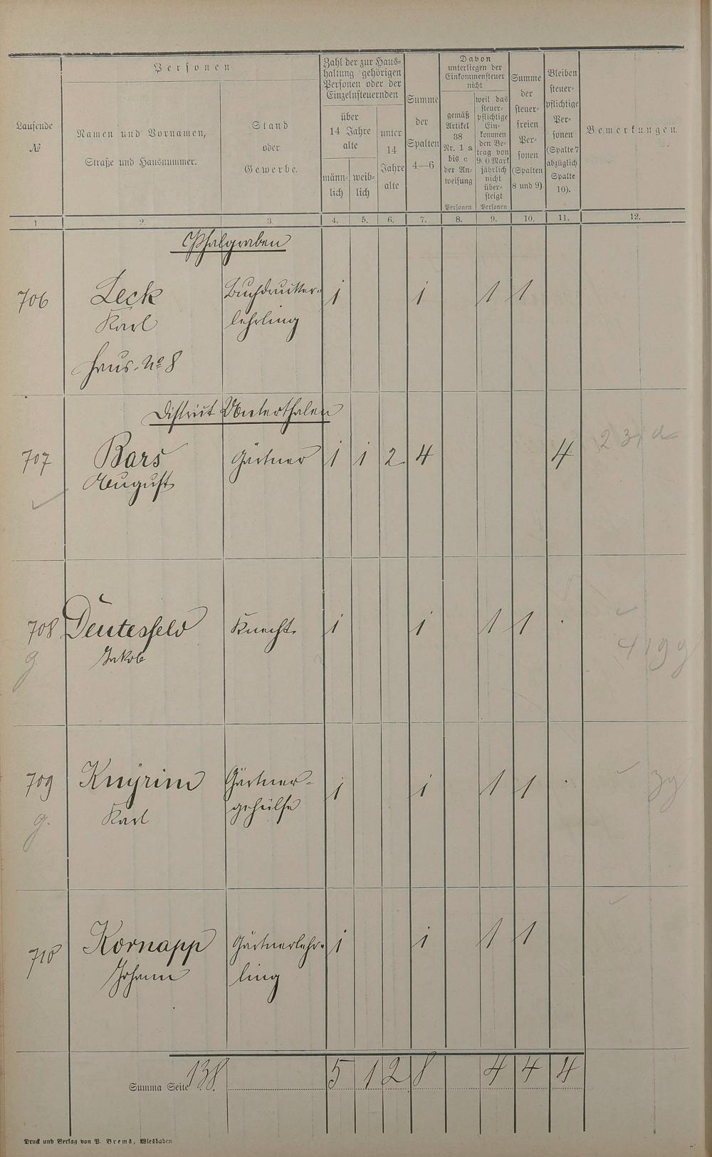 Einwohnerverzeichnis nach Straßen und Anzahl der steuerpflichtigen Personen