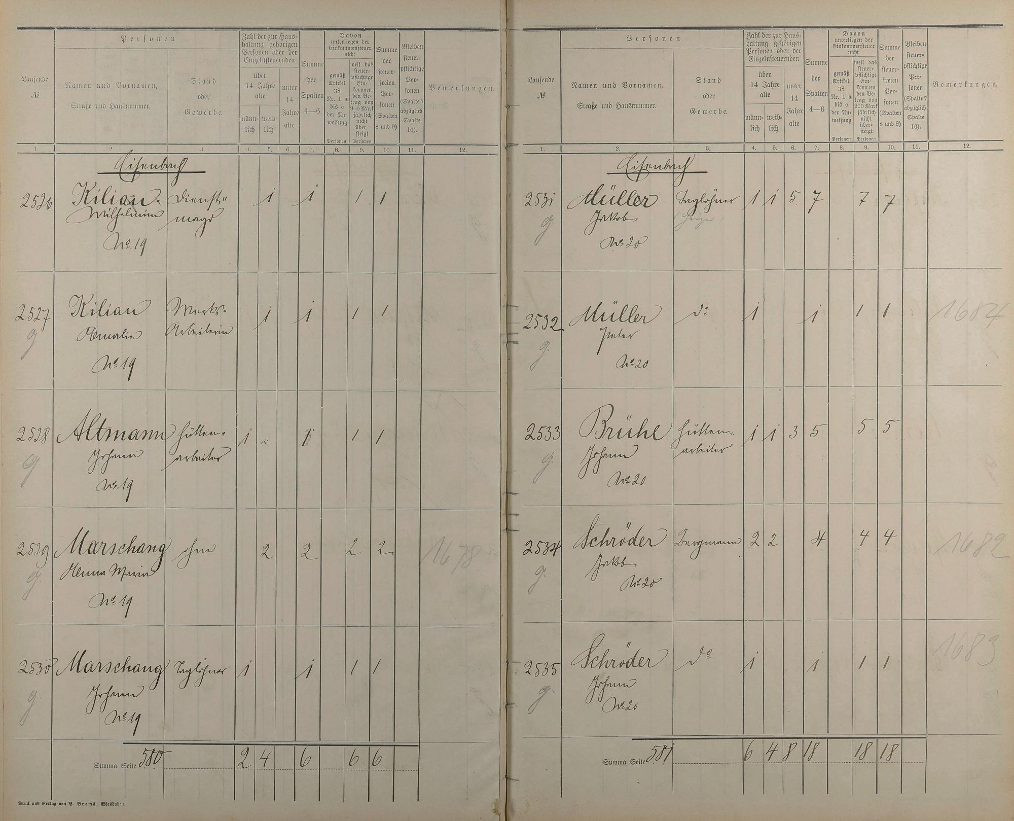 219: Einwohnerverzeichnis nach Straßen und Anzahl der steuerpflichtigen Personen